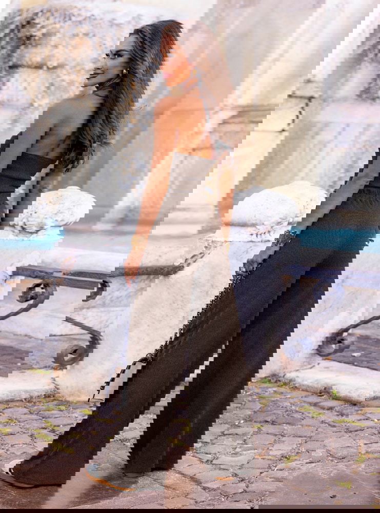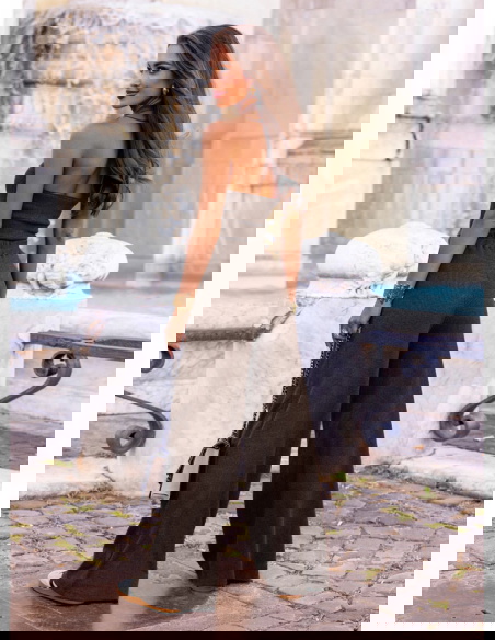 Czekoladowy prążkowany komplet top i spodnie Mironia to doskonała propozycja dla kobiet, które stawiają na wygodę w eleganckim, nowoczesnym wydaniu. Ten zestaw to połączenie stylu z funkcjonalnością – idealny na co dzień, ale i na bardziej dopracowane wyjścia. Prążkowana struktura tkaniny pięknie podkreśla sylwetkę, nie opina jej zbyt mocno, zapewniając swobodę i komfort. Dopasowany top typu halter subtelnie eksponuje ramiona i wysmukla szyję, nadając stylizacji kobiecego charakteru. Szerokie spodnie z wysokim stanem optycznie wydłużają nogi i dodają całości elegancji. Kolor głębokiej czekolady prezentuje się szlachetnie i wyjątkowo – to świetna alternatywa dla klasycznej czerni. Komplet doskonale wpisuje się w aktualne trendy i daje szerokie możliwości stylizacji. Można go nosić zarówno z trampkami, jak i szpilkami, w zależności od okazji. To model, który wygląda stylowo bez wysiłku – wystarczy założyć, dodać biżuterię i gotowe. Jeśli szukasz kompletnego, ale wygodnego looku – właśnie go znalazłaś.