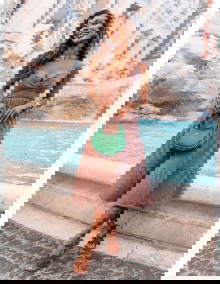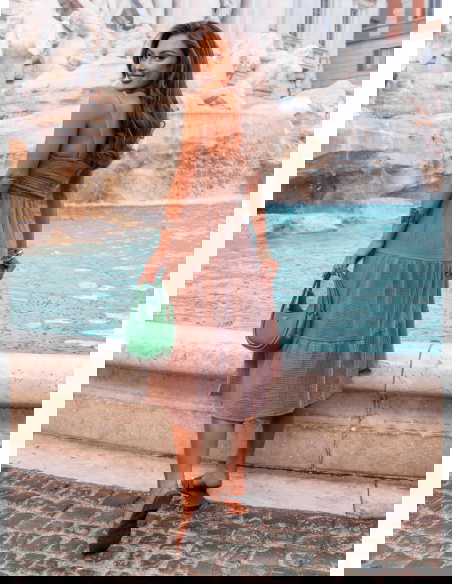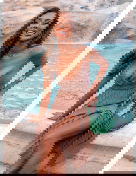 Muślinowa sukienka midi na ramiączkach Poliajnos - mocha mousse to kwintesencja kobiecego stylu w wakacyjnym wydaniu. Ten model podkreśla to, co w sylwetce najpiękniejsze, jednocześnie dając pełen komfort noszenia. Delikatne ramiączka i kopertowy dekolt tworzą subtelne, ale przyciągające spojrzenia wykończenie. Kolor mocha mousse to ciepły, ziemisty odcień, który świetnie podkreśla opaleniznę i pasuje do wielu typów urody. Długość midi sprawia, że sukienka jest bardzo uniwersalna i elegancka, ale nie przesadzona. To model, który z łatwością dopasujesz do swojego stylu – wystarczy zmienić dodatki. Stylizujesz ją raz i masz gotowy look na cały dzień. Sukienka ma lekko rozkloszowany krój, który dodaje sylwetce lekkości i swobody. Idealna zarówno na wyjazdy, jak i do miasta – zawsze wygląda świeżo i stylowo. To sukienka, do której chce się wracać każdego lata.