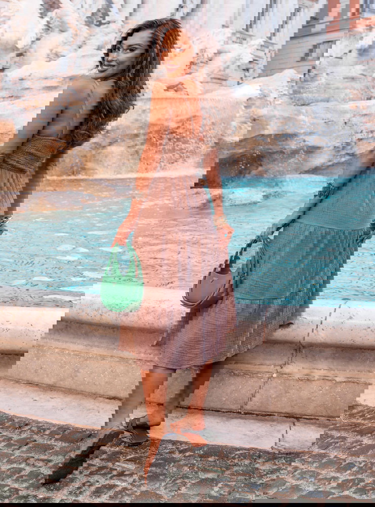 Muślinowa sukienka midi na ramiączkach Poliajnos - mocha mousse to letni klasyk, który warto mieć w swojej szafie. Jej atutem jest prostota, która daje ogromne możliwości stylizacyjne.