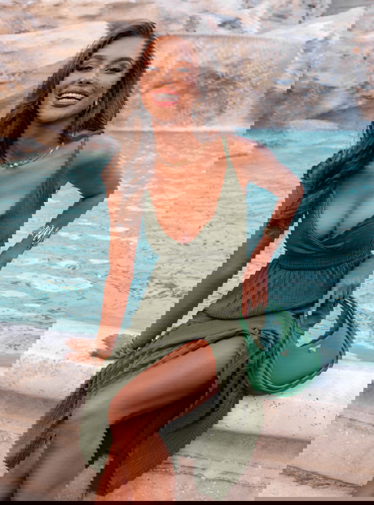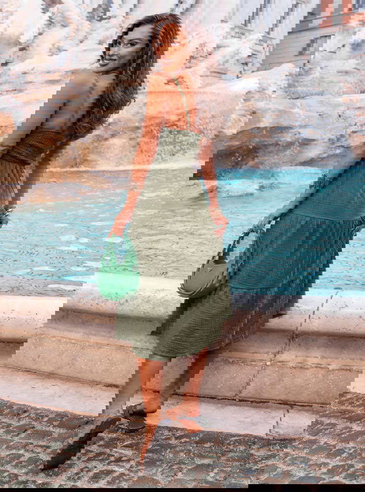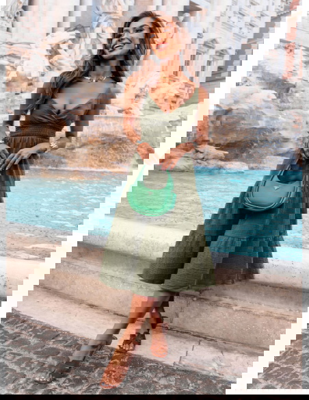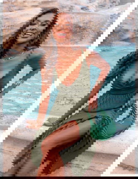 Muślinowa sukienka midi na ramiączkach Poliajnos - khaki to idealna propozycja na lato dla kobiet ceniących styl, komfort i kobiece fasony. Wykonana z przewiewnego, oddychającego muślinu, pięknie układa się na sylwetce i zapewnia maksymalną wygodę noszenia. Kobiecy dekolt w literę V subtelnie podkreśla biust i optycznie wysmukla szyję, a odcięcie pod biustem delikatnie modeluje talię. Rozkloszowany dół w długości midi świetnie pracuje w ruchu i nadaje sylwetce lekkości. Odcień khaki to ponadczasowa, stonowana zieleń, która pięknie współgra z letnią opalenizną i sprawdza się w każdej stylizacji – od casualowych, po bardziej eleganckie. To sukienka, która doskonale sprawdzi się zarówno na wakacjach, jak i na spacerze po mieście. Wystarczy dobrać odpowiednie dodatki, by za każdym razem wyglądać inaczej – sandałki i koszyk na co dzień, a szpilki i biżuteria na wieczorne wyjście. Ten model łączy prostotę z kobiecością i naturalnym wdziękiem. Must-have na ciepłe dni!