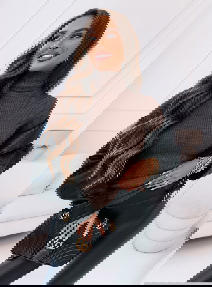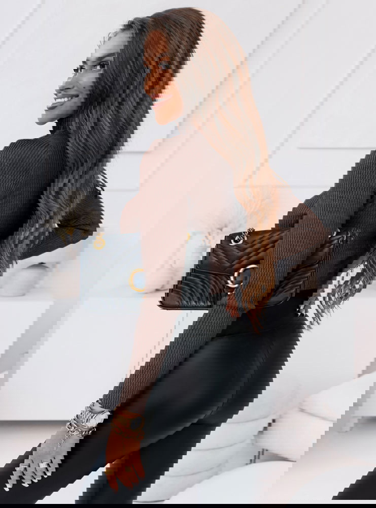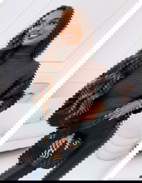 Czekoladowy sweter z golfem i długimi rękawami Perla to klasyka, która sprawdza się w każdej garderobie – niezależnie od sezonu. Jego dopasowany fason pięknie podkreśla sylwetkę, a ciepły, głęboki odcień czekolady dodaje stylizacji szlachetności i elegancji. To model, który możesz nosić solo lub jako bazę pod marynarkę, płaszcz czy kamizelkę – zawsze wygląda świetnie. Golf otula szyję i nadaje całości wyrafinowanego charakteru, jednocześnie dodając komfortu w chłodniejsze dni. Prążkowana struktura nadaje stylizacji lekkości i nowoczesnego akcentu. Ten sweter jest idealnym wyborem na sezon prefall, kiedy chcemy łączyć ciepło z modnym wyglądem. Świetnie wygląda w zestawie ze skórzanymi spodniami, jeansami czy spódnicą – i to niezależnie od pory dnia. To model stworzony z myślą o kobietach, które cenią prostotę z klasą. Założysz go do biura, na spotkanie czy po prostu wtedy, gdy chcesz wyglądać dobrze bez przesady. Sweter, który działa jak pewnik – po prostu zakładasz i jesteś gotowa.