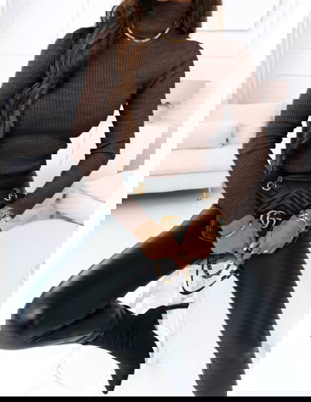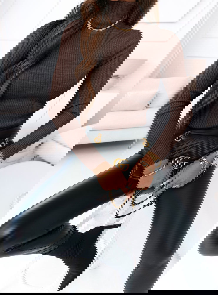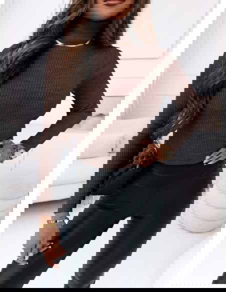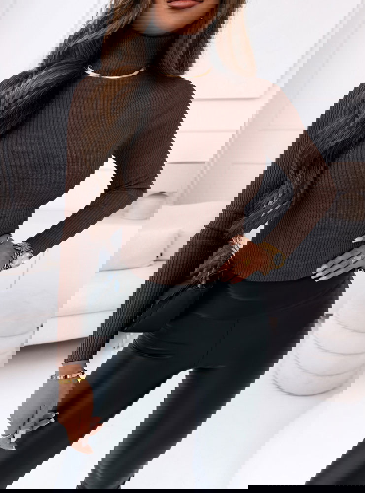 Czekoladowy sweter z golfem i długimi rękawami Perla