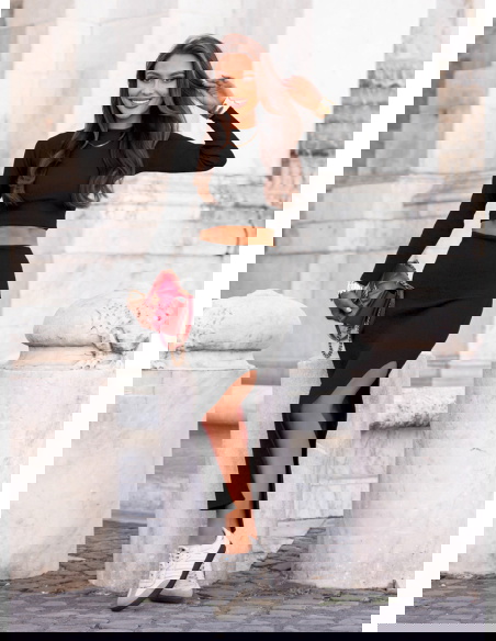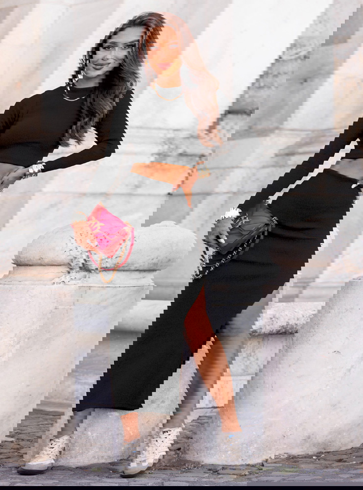 Czarny prążkowany komplet top+spódnica z rozcięciem Edvige to stylizacja, która perfekcyjnie łączy kobiecość, prostotę i nowoczesny charakter. Dopasowany top pięknie podkreśla górę sylwetki, a spódnica z wysokim stanem i efektownym rozcięciem eksponuje nogi, dodając całemu lookowi lekkości i zmysłowości. To zestaw, który wygląda świetnie sam w sobie, ale też daje pole do modowej zabawy dodatkami. Prążkowana faktura dodaje mu struktury i subtelnego pazura, a czarny kolor sprawia, że zawsze będzie wyglądał stylowo. To komplet stworzony dla kobiet, które chcą wyglądać efektownie, ale nie przesadnie – z klasą i bez zbędnego wysiłku. Idealny na sezon prefall, kiedy dni są ciepłe, ale już szukamy bardziej stonowanych, ponadczasowych stylizacji. Można go nosić ze sneakersami, sandałkami lub szpilkami – w zależności od okazji. Zestaw przyciąga wzrok, ale jest też bardzo funkcjonalny i wygodny. Jeśli szukasz stylizacji, która wygląda modnie i nowocześnie, ale nie krępuje ruchów – to zdecydowanie propozycja dla Ciebie. Minimalistyczna forma, a efekt – naprawdę maksymalny.