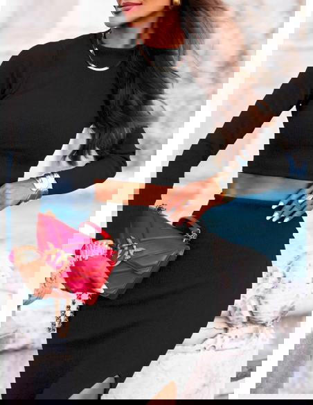 Czarny prążkowany komplet top+spódnica z rozcięciem Edvige