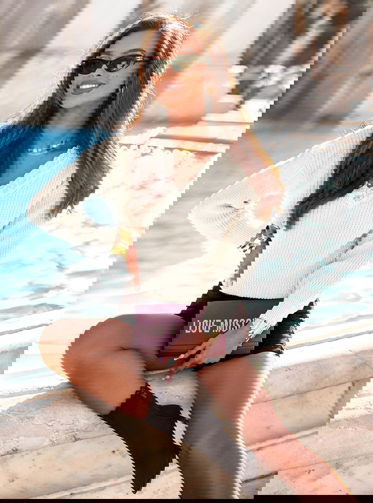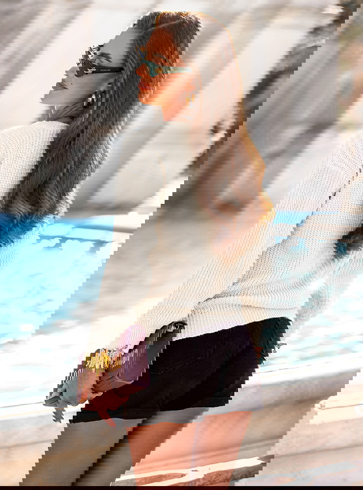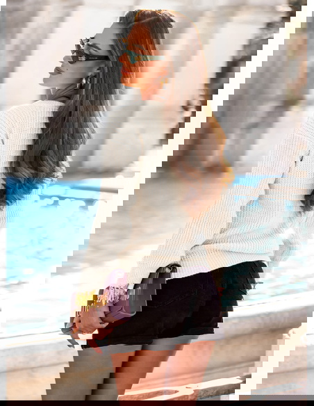 Sweter z ozdobnym dekoltem w serek Cithali - ecru to delikatna, kobieca propozycja, która zachwyca detalami i klasyczną formą. Idealnie wpisuje się w klimat kolekcji prefall, oferując subtelną elegancję na chłodniejsze dni. Jasny odcień ecru pięknie rozświetla stylizację i pasuje do każdej karnacji. Głęboki dekolt w serek został wykończony ozdobnym ściągaczem z falowanym brzegiem, który dodaje całości uroku i wyróżnia ten model na tle klasycznych swetrów. Krój jest lekko dopasowany, ale nie opinający – co czyni go wygodnym, ale wciąż bardzo kobiecym. Długie rękawy zakończone są elastycznym mankietem, co nadaje sylwetce harmonii i proporcji. To sweter, który z powodzeniem zestawisz z szortami, spodniami z wysokim stanem czy ulubioną spódnicą. Świetnie wygląda zarówno solo, jak i jako warstwa pod marynarkę czy płaszcz. Minimalizm formy przełamany został romantycznym wykończeniem, dzięki czemu ten model świetnie sprawdzi się na co dzień i na bardziej wyjątkowe okazje. Jeśli szukasz klasycznego swetra z nutą delikatności – ten model spełni Twoje oczekiwania.