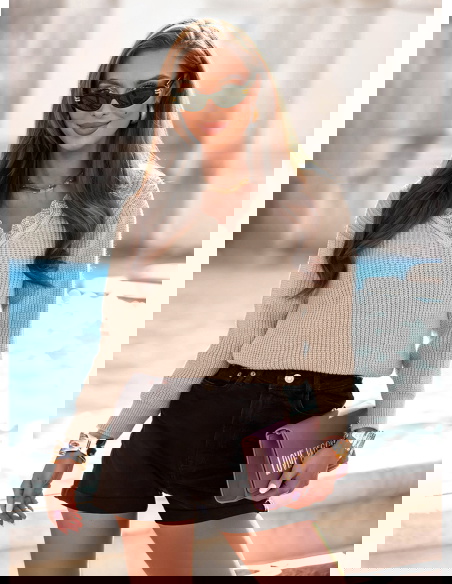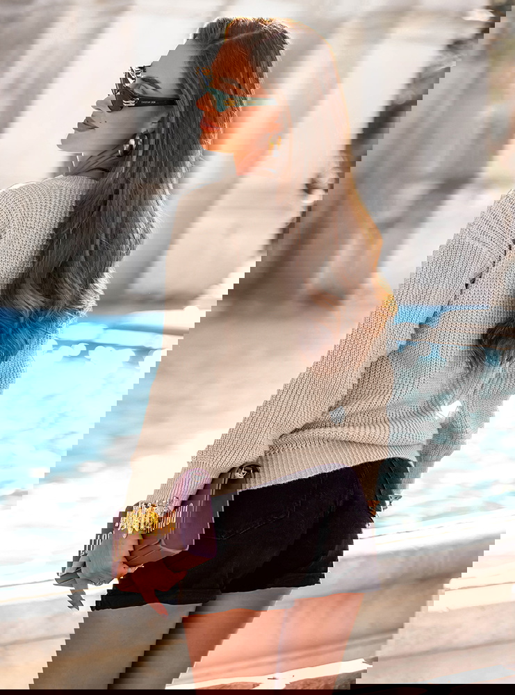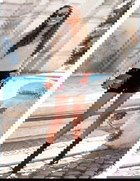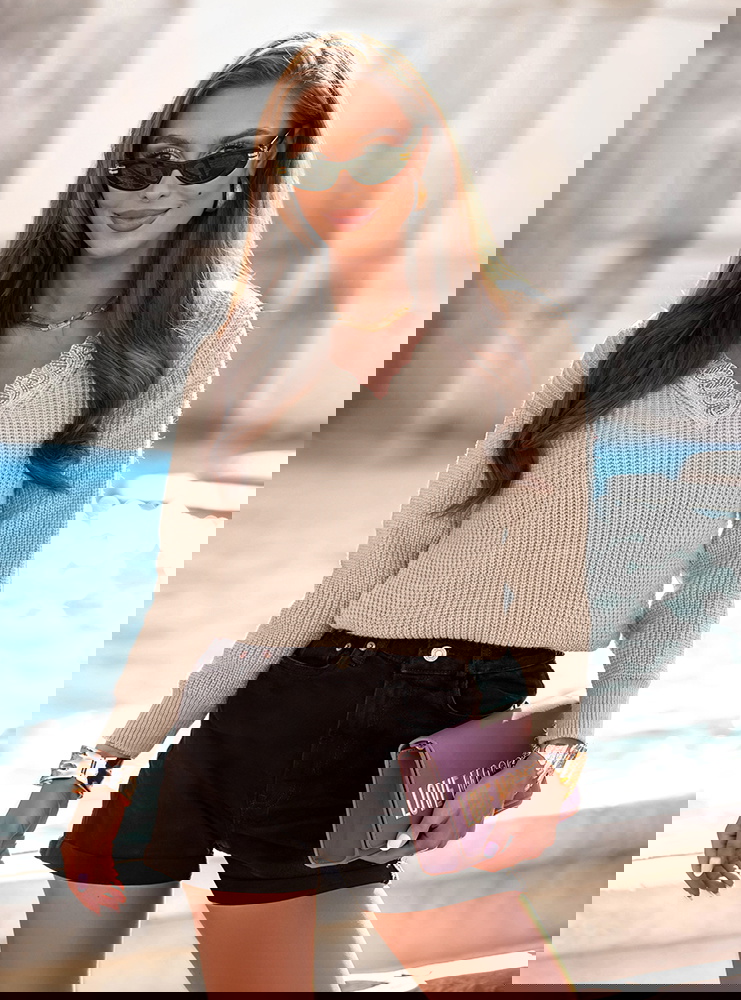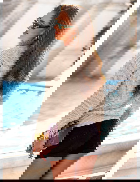 Beżowy sweter z ozdobnym dekoltem w serek Cithali to klasyczna baza w kobiecym wydaniu, która sprawdzi się w niejednej stylizacji. Subtelny beżowy kolor pięknie podkreśla ciepło cery i pasuje do wielu innych odcieni. To model, który wygląda na pierwszy rzut oka bardzo klasycznie, ale wyróżnia się dekoracyjnym wykończeniem dekoltu. Wzór w serek optycznie wydłuża szyję i dodaje elegancji, a ozdobne wykończenie wprowadza lekko romantyczny akcent. Krój jest dopasowany, ale nie obcisły, co pozwala czuć się swobodnie, ale jednocześnie wyglądać kobieco. Rękawy są lekko zwężane, co nadaje całości zgrabnego kształtu. To sweter, który możesz nosić zarówno do jeansów, jak i bardziej dopracowanych stylizacji. Idealnie wpisuje się w sezon prefall, kiedy szukamy ubrań ciepłych, ale nadal lekkich i stylowych. Ten model to świetne połączenie klasyki i detalu – a to zawsze działa. Z powodzeniem sprawdzi się zarówno w codziennym looku, jak i w bardziej eleganckiej odsłonie.