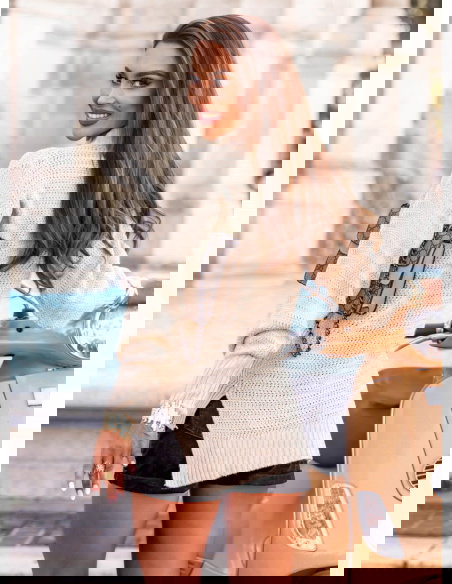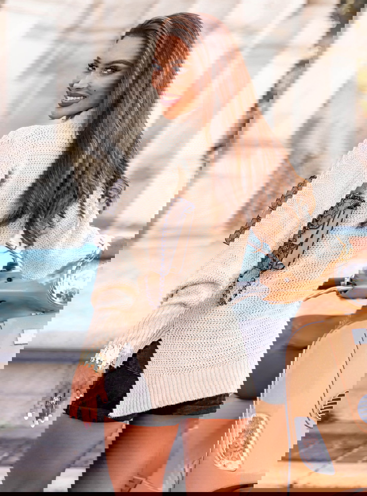 Beżowy sweter z półgolfem i długimi rękawami Zenaidee to kwintesencja klasyki, która nigdy nie wychodzi z mody. Ten model to idealna propozycja na pierwsze chłodne dni, kiedy chcemy czuć się komfortowo i wyglądać stylowo. Sweter subtelnie podkreśla sylwetkę, jednocześnie pozostając swobodnym i przyjemnym w noszeniu. Beżowy kolor doskonale komponuje się z wieloma innymi barwami – od klasycznej czerni po cieplejsze odcienie jesieni. To propozycja, która świetnie sprawdzi się w różnorodnych stylizacjach – od miejskich looków po bardziej eleganckie zestawienia. Półgolf nadaje całości modowego charakteru, delikatnie eksponując szyję i biżuterię. Długie rękawy są lekkko luźne, co dodaje całości kobiecego uroku i nonszalancji. Z boku sweter posiada stylowe rozcięcie, które nadaje mu lekkości i sprawia, że pięknie układa się na sylwetce. W tym modelu znajdziesz równowagę między wygodą a stylową elegancją. Sweter pochodzi z kolekcji prefall, która przygotowuje nas na sezon przejściowy w najlepszym stylu.