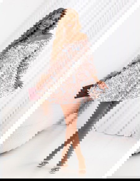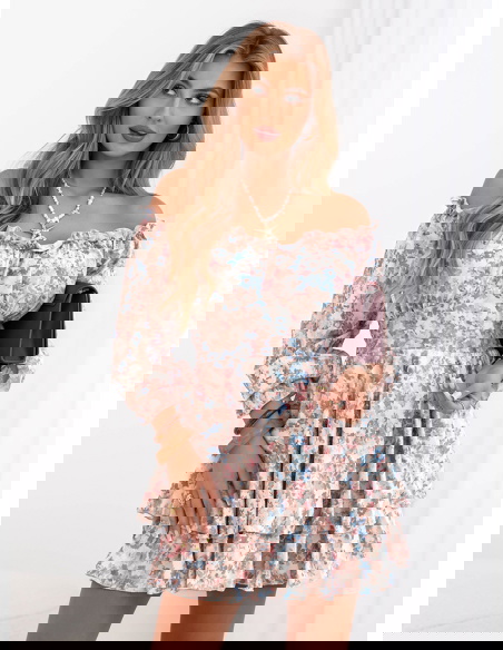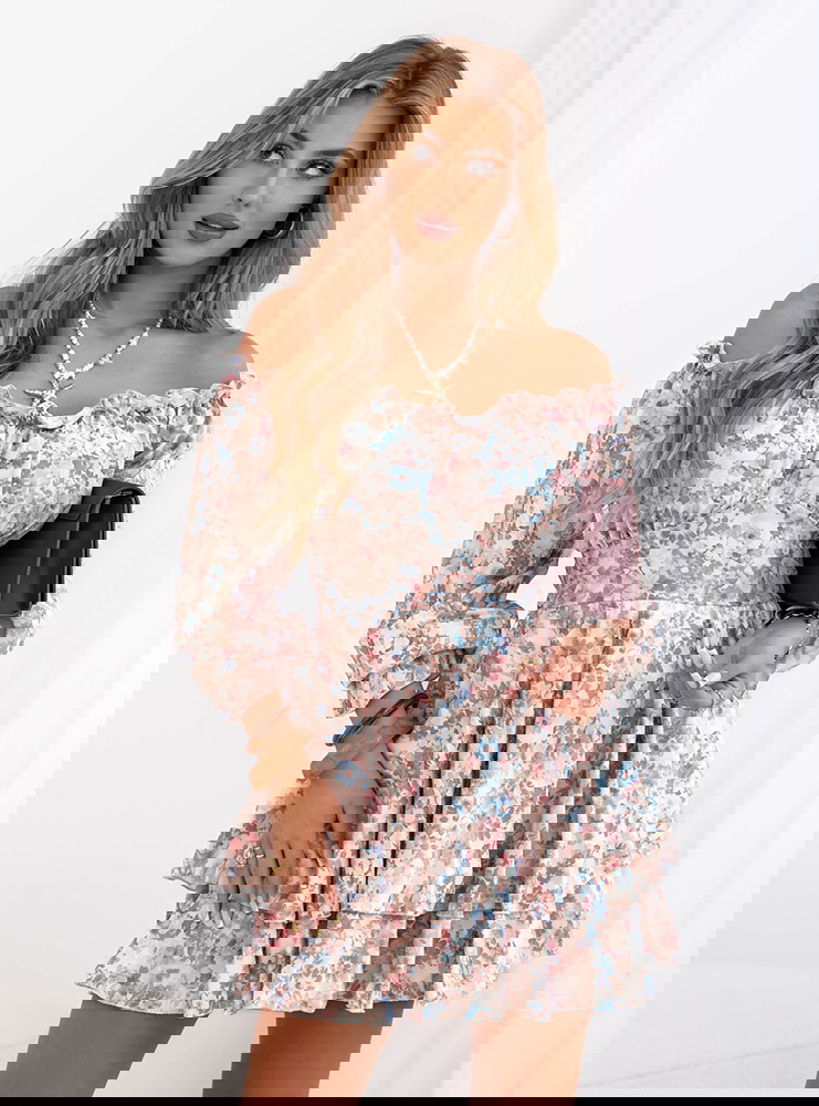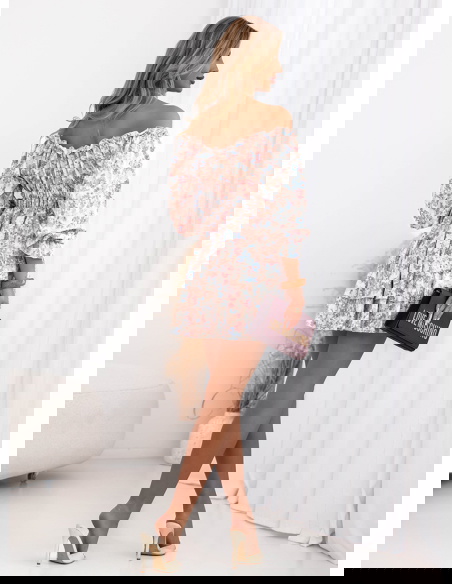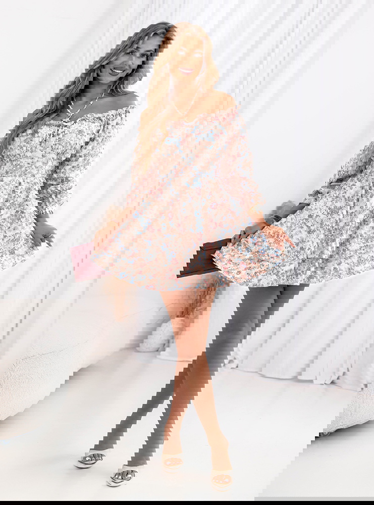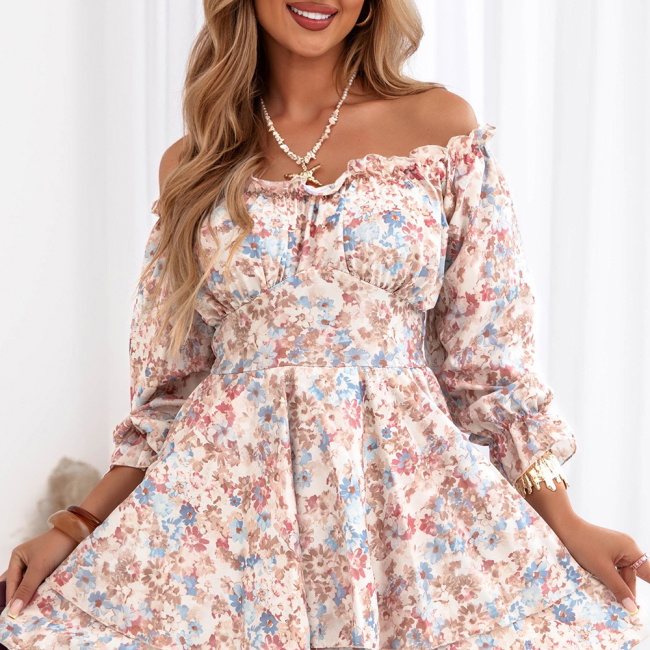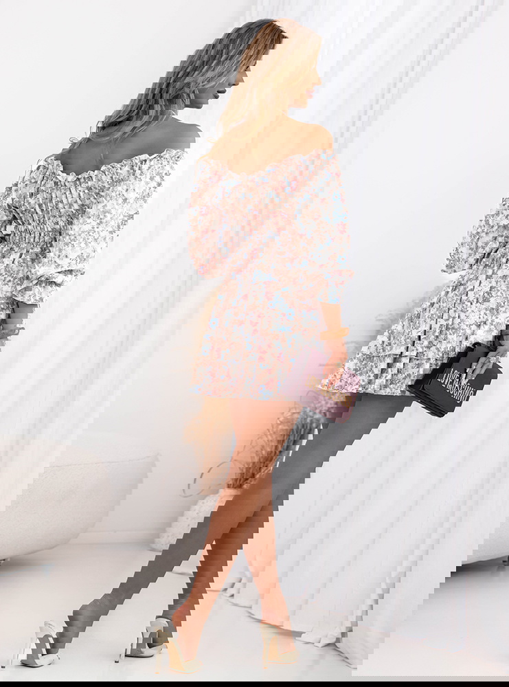 Wzorzysta rozkloszowana sukienka typu hiszpanka Monna - R15 to kwintesencja kobiecości i romantycznego stylu. Jej uroczy, kwiatowy print w pastelowych odcieniach od razu przyciąga spojrzenia i wprowadza w radosny nastrój. Fason typu hiszpanka z odsłoniętymi ramionami dodaje subtelnej zmysłowości i podkreśla delikatność sylwetki. Długie rękawy zakończone falbanką wprowadzają lekki, dziewczęcy akcent. Rozkloszowany dół nadaje całości lekkości i sprawia, że sukienka pięknie faluje przy każdym ruchu. To model, który doskonale wpisuje się w letnie klimaty, ale z powodzeniem można go nosić także w cieplejsze wiosenne dni. Pastelowa kolorystyka i kwiatowy wzór tworzą duet, który nigdy nie wychodzi z mody. To sukienka, w której poczujesz się wyjątkowo, niezależnie od okazji. Jej romantyczny charakter sprawi, że każda stylizacja nabierze świeżości i wdzięku. Wystarczy dodać delikatne dodatki, aby stworzyć look pełen uroku i klasy.