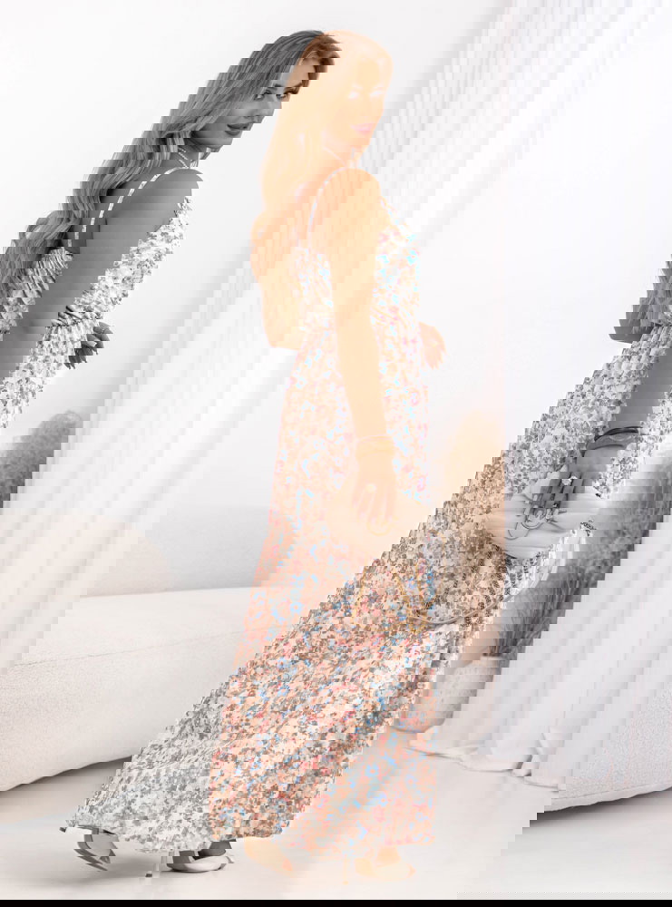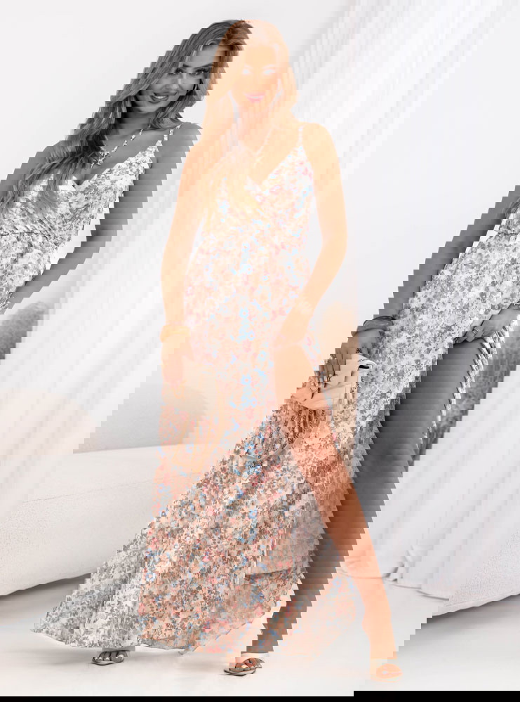 Wzorzysta sukienka maxi z rozcięciem Zahia - R15 to propozycja, która zachwyci każdą miłośniczkę kobiecych, zwiewnych fasonów. Jej efektowna długość i przyciągający uwagę print sprawiają, że od razu wyróżnia się na tle innych modeli. Lekki krój pięknie podkreśla sylwetkę, jednocześnie zapewniając swobodę ruchów. Głębokie rozcięcie na nodze dodaje całości nuty zmysłowości, która przyciąga spojrzenia. To sukienka, która łączy w sobie elegancję z odrobiną luzu, idealną na cieplejsze dni. Kolorowe wzory nadają jej świeżości i lekkości, a kobiecy dekolt w kształcie litery „V” wysmukla szyję i podkreśla biust. Delikatne ramiączka dodają subtelności i lekkości całej stylizacji. To model, który świetnie sprawdzi się w wielu sytuacjach – od spaceru po plaży po wieczorne spotkania. Dzięki długości maxi prezentuje się niezwykle szykownie i modnie. Jeśli lubisz ubrania, które łączą wygodę z efektem „wow”, ta sukienka jest dla Ciebie.
