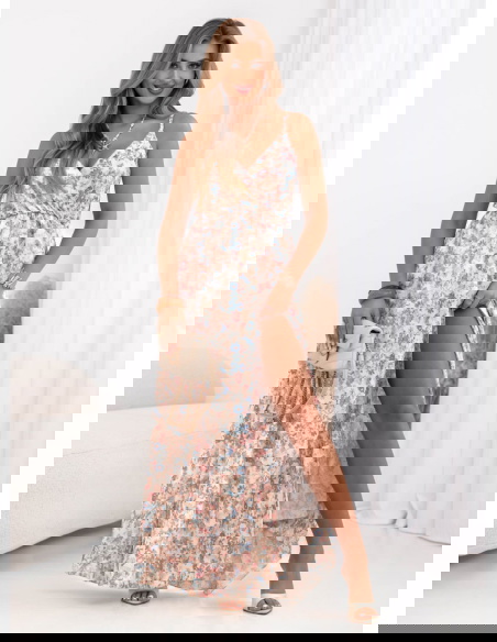 Wzorzysta sukienka maxi z rozcięciem Zahia - R15