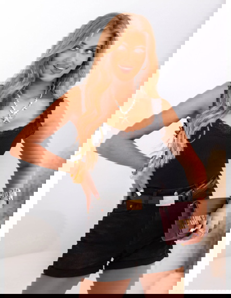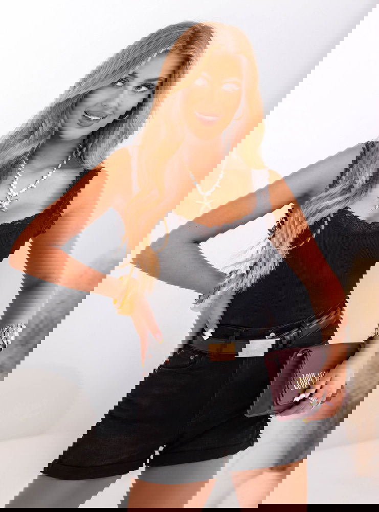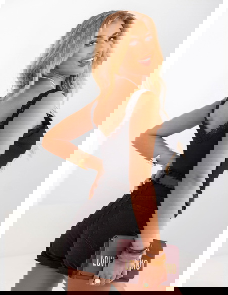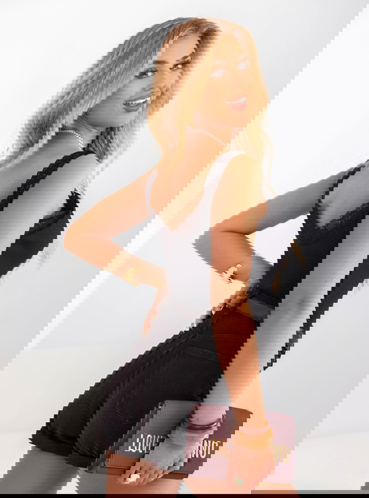 Modelka prezentuje produkty o rozmiarach S/M