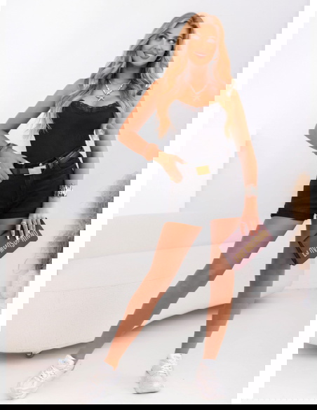 Czarny prążkowany top z koronkowymi ramiączkami Blaqie