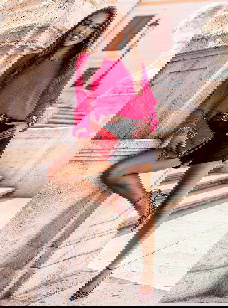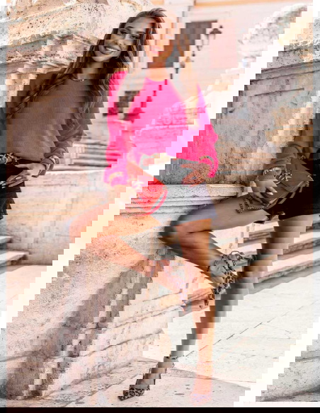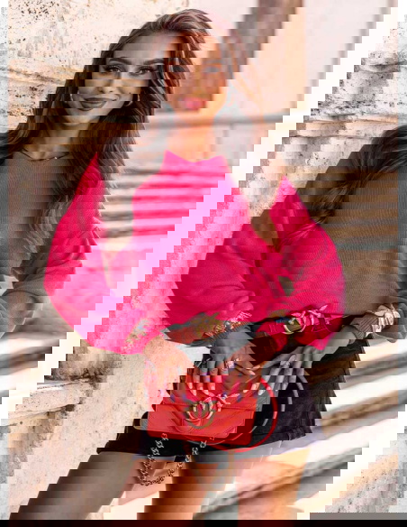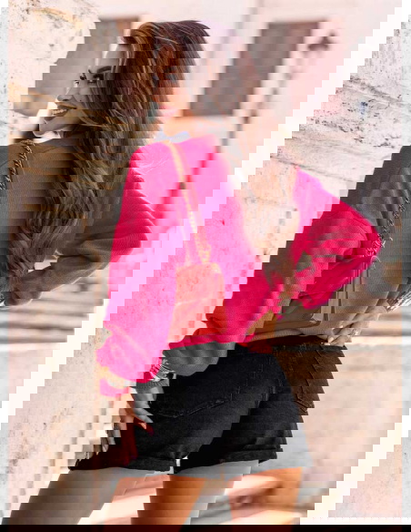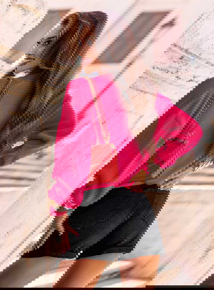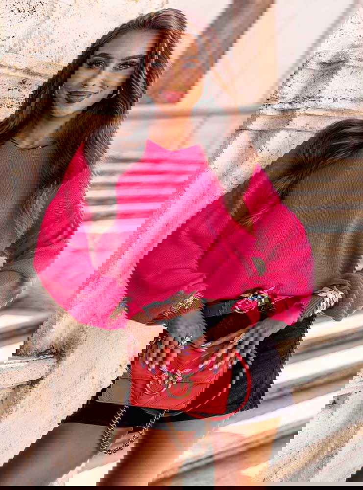 Sweter oversize z długimi rękawami Lavella - różowy neon to energetyczny akcent, który ożywi każdą stylizację. Intensywny, neonowy odcień różu sprawia, że trudno przejść obok niego obojętnie. Sweter ma luźny krój typu oversize, który zapewnia maksymalny komfort noszenia, a jednocześnie wpisuje się w aktualne trendy. Długie, lekko bufiaste rękawy nadają całości modowego charakteru i podkreślają swobodny styl. Dekolt w kształcie litery „V” dodaje kobiecego akcentu, a prosty dół pozwala na różnorodne sposoby noszenia – luźno lub częściowo wsunięty w spodnie czy spódnicę. To model, który będzie świetną bazą do tworzenia miejskich, wyrazistych zestawów. W kolekcji prefall sweter w neonowym kolorze to odważna, ale praktyczna propozycja na dni, kiedy chcesz dodać energii swojemu lookowi. Łączy wygodę, luz i efekt „wow” w jednym. To idealny wybór dla kobiet, które lubią bawić się modą i wyróżniać się w tłumie.
