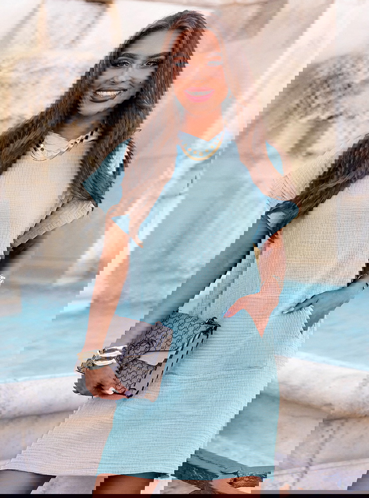 Błękitna muślinowa sukienka z kapturem Henrietta to propozycja, która od pierwszego spojrzenia zachwyca swoim świeżym i lekkim charakterem. Jej pastelowy odcień błękitu wprowadza do stylizacji powiew wakacyjnego luzu, a jednocześnie nadaje całości dziewczęcego uroku. Luźny, swobodny krój zapewnia pełen komfort noszenia, podkreślając jednocześnie naturalną swobodę ruchów. Kaptur dodaje nuty sportowej nonszalancji, która świetnie komponuje się z miejskimi i casualowymi stylizacjami. Krótkie rękawy i długość do kolan sprawiają, że model ten sprawdzi się w ciepłe dni, dając poczucie przewiewności. Sukienka posiada wygodne kieszenie, które dodają jej funkcjonalności i codziennego charakteru. Delikatna struktura muślinu nadaje całości subtelnej lekkości. Ten model z kolekcji prefall jest idealnym przejściem między letnimi dniami a chłodniejszymi wieczorami. Możesz w niej poczuć się zarówno na luzie, jak i stylowo. To ubranie, które łączy wygodę z estetyką w najlepszym wydaniu.