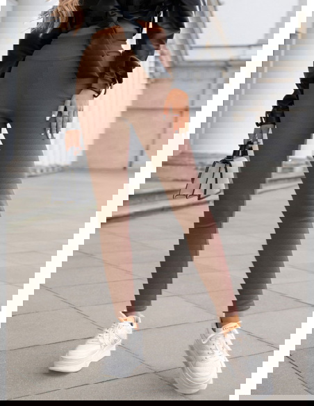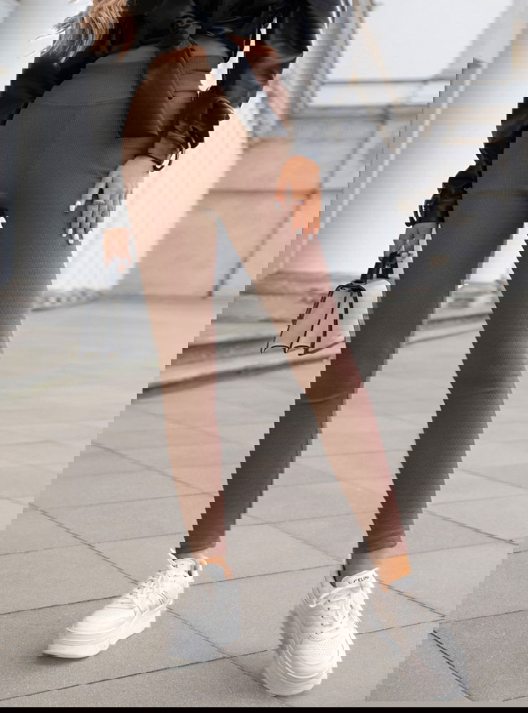 Prążkowane dopasowane legginsy Velvet - mocha mousse to must-have w szafie każdej kobiety ceniącej wygodę i styl. Ich uniwersalny kolor i prosty fason sprawiają, że będą pasować do wielu elementów garderoby.