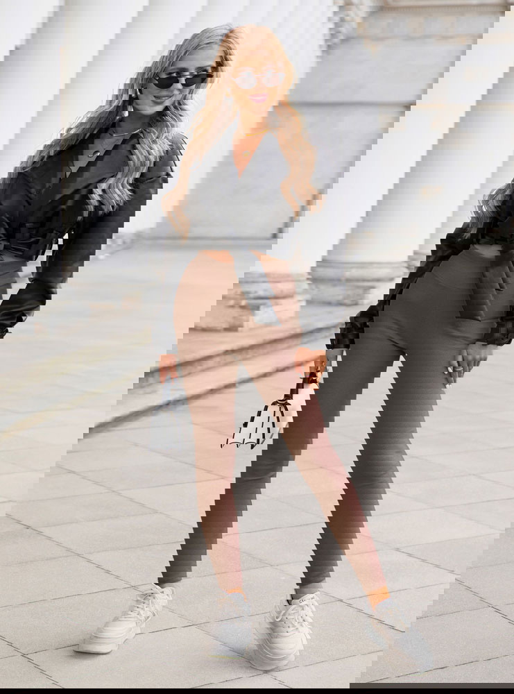 Prążkowane dopasowane legginsy Velvet - mocha mousse to propozycja, która zachwyca swoją prostotą i ponadczasowym stylem. Ich przylegający fason pięknie podkreśla sylwetkę, dodając jej smukłości i lekkości. Neutralny odcień mocha mousse sprawia, że legginsy stają się niezwykle uniwersalne i łatwe do łączenia z innymi elementami garderoby. Delikatna prążkowana struktura nadaje całości modnego, subtelnego akcentu. Wpisujące się w kolekcję Prefall, świetnie odnajdują się w codziennych stylizacjach na przejściowe pory roku. Wysoki stan nie tylko zapewnia wygodę, ale też optycznie wydłuża nogi i modeluje talię. Te legginsy doskonale sprawdzą się zarówno w casualowym wydaniu, jak i w nieco bardziej eleganckich zestawach. Prosta forma pozwala na swobodę w doborze dodatków i górnych części garderoby. To idealna baza, która w kilka chwil stworzy stylowy i spójny look. W nich poczujesz się pewnie i komfortowo – niezależnie od okazji.