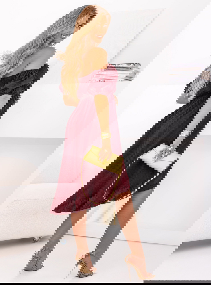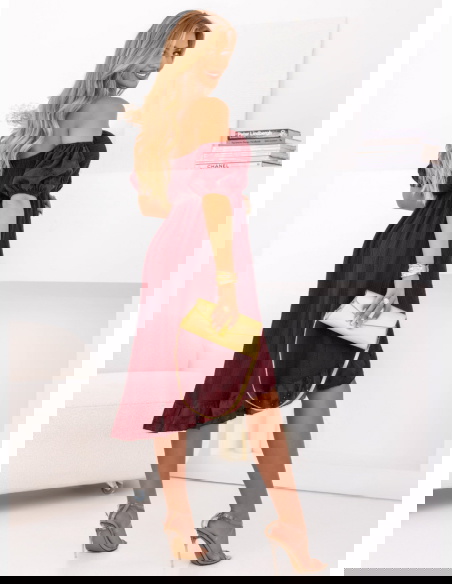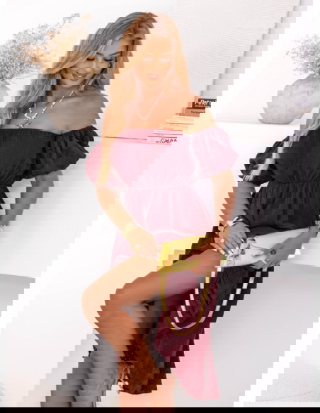 Bordowa muślinowa sukienka typu hiszpanka Mikeya to kwintesencja letniej lekkości i kobiecego wdzięku. Odkryte ramiona pięknie podkreślają linię szyi i dodają stylizacji zmysłowego charakteru. Elastyczny dekolt „hiszpanka” pozwala nosić ją klasycznie lub swobodnie opuszczoną na ramiona. Mikeya będzie świetnym wyborem na letnie spacery, spotkania z przyjaciółmi i weekendowe wyjazdy. Sprawdzi się na wakacjach, podczas zwiedzania i kolacji nad morzem. Wystarczy dodać kapelusz i sandałki, by stworzyć casualowy zestaw na dzień. Z delikatnymi obcasami i biżuterią zyskuje bardziej elegancki charakter na przyjęcia czy rodzinne uroczystości. To sukienka, która naturalnie dopasuje się do planów pełnych słońca.