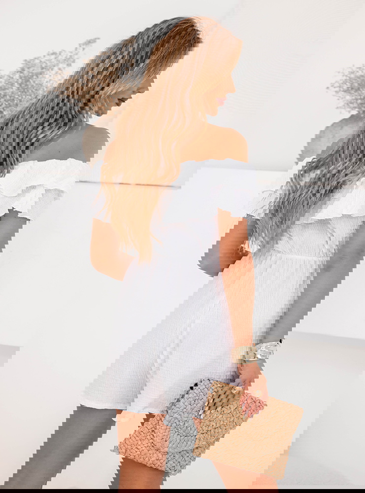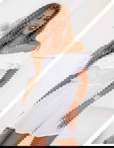 Biały krótki kombinezon hiszpanka Salema to esencja letniej lekkości i niewymuszonej elegancji. Odkryte ramiona pięknie eksponują szyję oraz obojczyki, a przy tym nadają stylizacji wakacyjnego charakteru. Podwójna falbana przy dekolcie subtelnie dodaje objętości w górnej partii i przyciąga wzrok. Luźno puszczona góra harmonijnie łączy się z krótkimi, lekko rozkloszowanymi nogawkami, które dają efekt mini-sukienki. Świetny na letnie spacery, spotkania z przyjaciółmi i weekendowe wyjazdy. Sprawdzi się podczas wakacji – od promenady nad morzem po zwiedzanie miast. W wersji casualowej noś go z płaskimi klapkami, okularami i plecioną torebką. Na wieczór dodaj obcasy, biżuterię i małą torebkę na łańcuszku, a zyskasz bardziej elegancki efekt. To uniwersalna baza, która dopasuje się do Twoich planów.