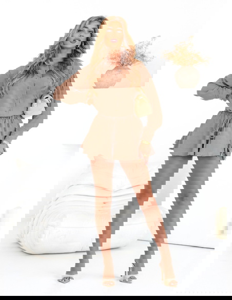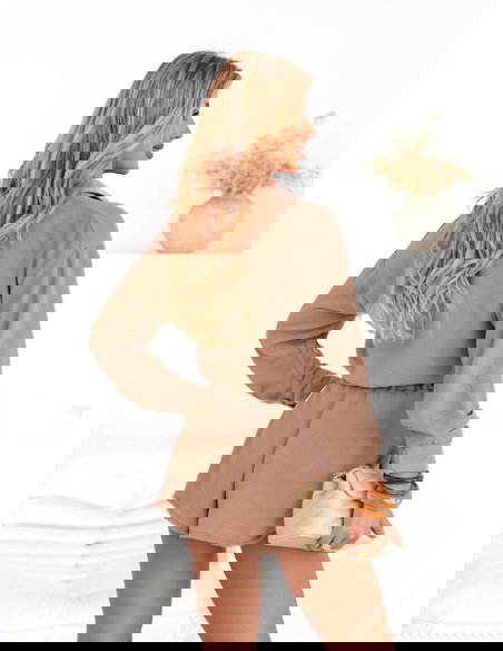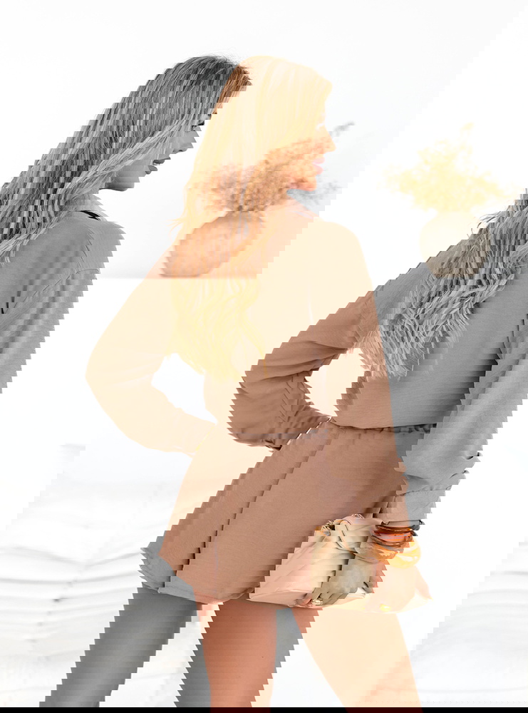 Komplet koszulowy top i rozkloszowane spodenki Raisan - mocha mousse o ponadczasowa prostota, wygoda i kobieca lekkość. Regulowana talia dba o dopasowanie, a koszulowa góra dodaje klasy. Jedna inwestycja – wiele stylizacji, przez cały sezon.