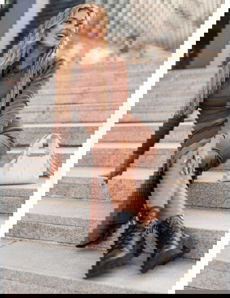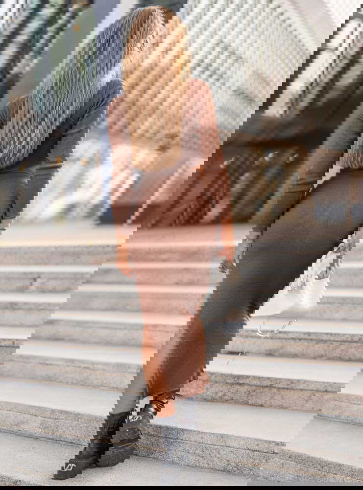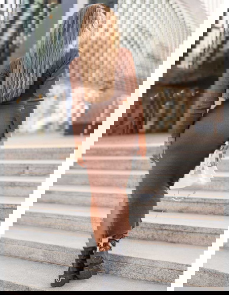 Prążkowany komplet top+spódnica z rozcięciem Keelyn - mocha mousse to propozycja, która idealnie łączy wygodę z elegancją. Ten zestaw przyciąga uwagę swoim minimalistycznym krojem, który pięknie podkreśla kobiecą sylwetkę. Ciepły, stonowany kolor mocha mousse to alternatywa dla klasycznych barw – subtelny, a jednocześnie wyrazisty. Prążkowana faktura materiału nadaje całości nowoczesności, a zarazem sprawia, że komplet świetnie dopasowuje się do figury. Krótki top w połączeniu ze spódnicą midi tworzy zgrany duet, który wygląda zarówno stylowo, jak i bardzo kobieco. Rozcięcie w spódnicy to detal, który dodaje odrobiny zmysłowości, a jednocześnie zapewnia swobodę ruchów. Ten komplet jest praktyczny – możesz go nosić jako całość lub rozdzielić, łącząc poszczególne elementy z innymi ubraniami. To ubranie, które z łatwością dopasujesz zarówno do eleganckich stylizacji, jak i codziennych zestawów. Neutralny odcień mocha mousse świetnie komponuje się zarówno z jasnymi, jak i ciemniejszymi dodatkami. To propozycja, która sprawdzi się w szafie każdej kobiety, ceniącej modny, ale jednocześnie ponadczasowy styl.