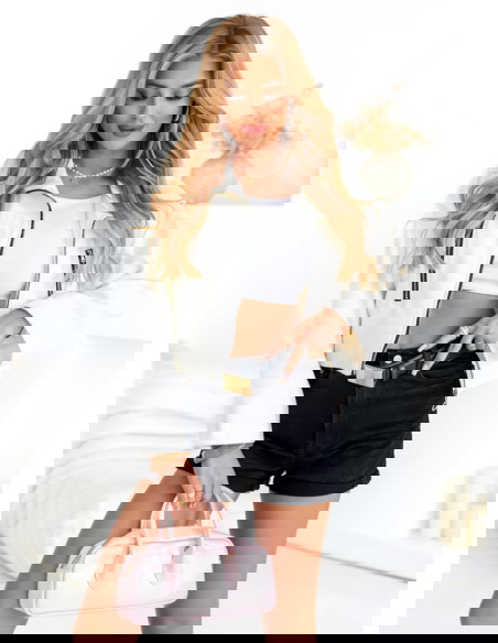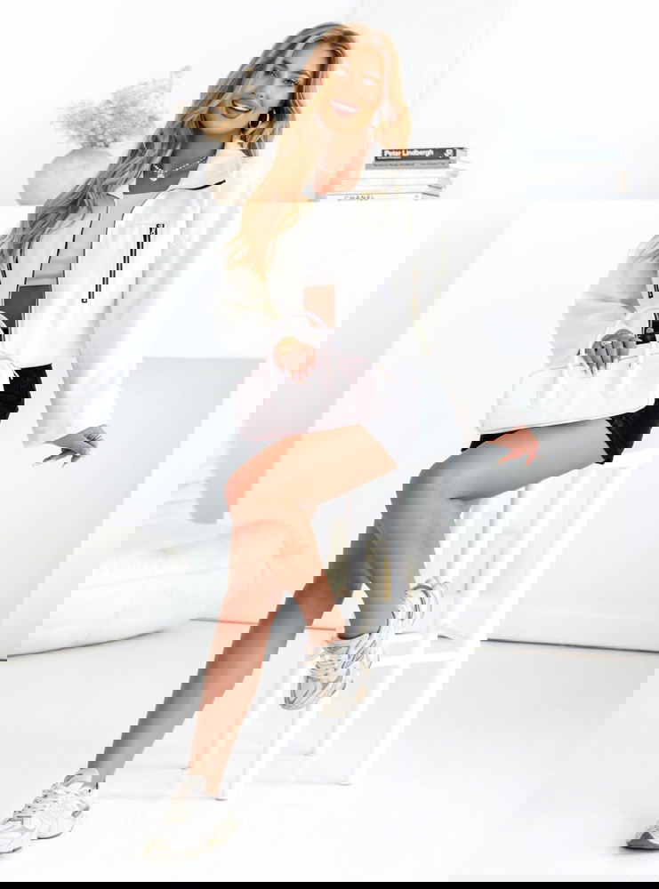 Biała kurtka zapinana na zamek Taralyn to propozycja, która od razu przyciąga wzrok swoją lekkością i świeżym charakterem. Krótki krój świetnie podkreśla proporcje i sprawia, że sylwetka wygląda nowocześnie. Centralny zamek nadaje całości uporządkowanego, miejskiego stylu. Po bokach znajdują się pionowe kieszenie na zamki, które stanowią zarówno element ozdobny, jak i praktyczny. Szerokie rękawy dodają luzu i wygody, a jednocześnie podkreślają modny charakter. Obniżona linia ramion wprowadza nutę swobody i casualowego klimatu. Kurtka kończy się nieco powyżej bioder, co sprawia, że idealnie komponuje się z szortami, spódnicami i spodniami z wysokim stanem. Minimalistyczny fason przełamują kontrastowe suwaki, które dodają całości wyrazistości. To model, który świetnie wygląda zarówno rozpięty, jak i zapięty pod szyję. Całość tworzy lekką, modną propozycję w sam raz na cieplejsze dni i wakacyjne przygody.