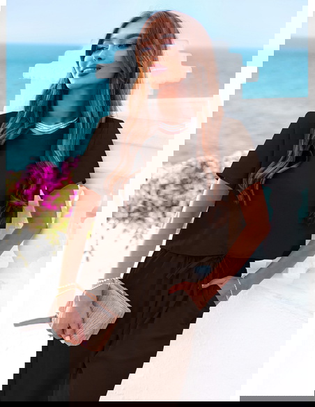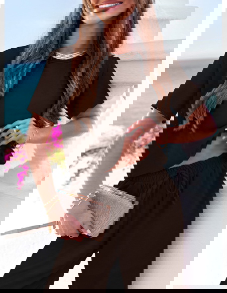 Czekoladowy komplet bluzka z krótkim rękawem i spodnie Esperanza to doskonała propozycja dla kobiet, które lubią wygodę połączoną z elegancją. Piękny, głęboki kolor dodaje całości szyku i sprawia, że zestaw prezentuje się wyjątkowo. Luźny fason bluzki zapewnia komfort, a jednocześnie delikatnie podkreśla sylwetkę. Spodnie z szerokimi nogawkami nadają lekkości i swobody, tworząc nowoczesny i modny efekt. To zestaw, który można nosić zarówno w codziennych sytuacjach, jak i podczas specjalnych okazji. Minimalistyczny krój sprawia, że łatwo dopasować go do dodatków w różnych stylach. Komplet świetnie sprawdza się w cieplejsze dni, zapewniając przewiewność i swobodę ruchów. Czekoladowy odcień idealnie komponuje się z naturalnymi barwami, jak beże czy złoto. Dzięki swojej prostocie jest niezwykle uniwersalny i ponadczasowy. To wybór dla kobiet, które chcą czuć się wygodnie, a jednocześnie emanować elegancją.