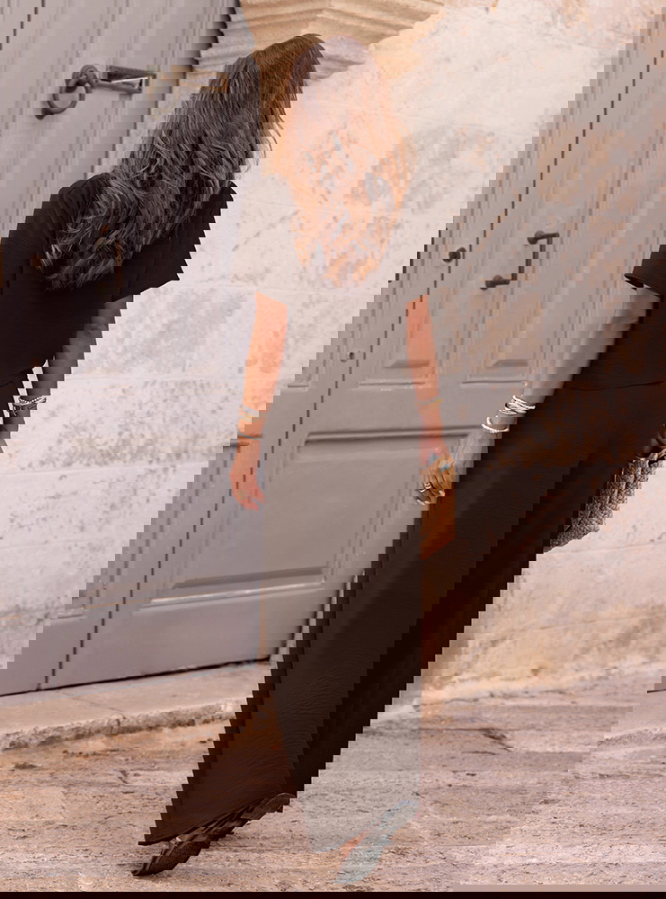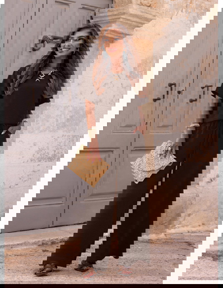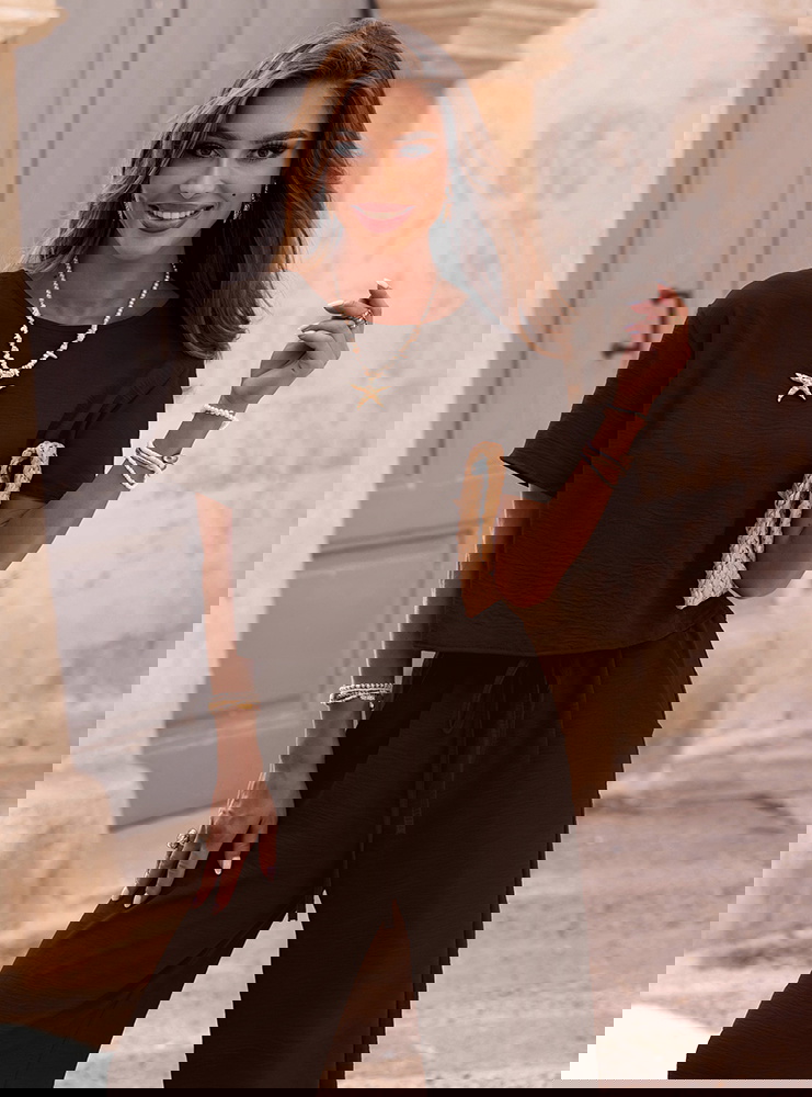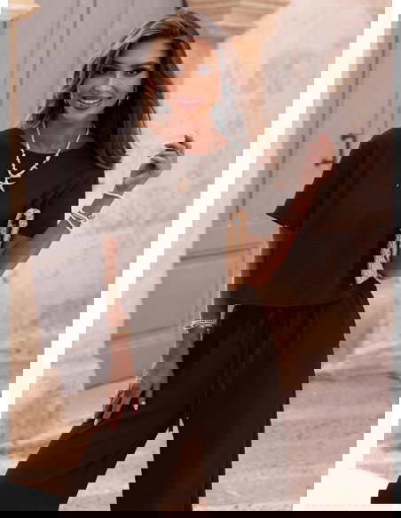 Czekoladowy komplet bluzka z krótkim rękawem i szerokie spodnie Annastasia to propozycja, która od razu przyciąga uwagę swoją elegancją i lekkością. Głęboki odcień brązu pięknie współgra z opalenizną i pasuje do wielu dodatków. Bluzka o luźnym kroju zapewnia swobodę i komfort, a jednocześnie wygląda bardzo kobieco. Spodnie z szerokimi nogawkami wprowadzają efekt lekkości i optycznie wydłużają sylwetkę. To zestaw, który świetnie łączy wygodę z nowoczesnym, minimalistycznym stylem. Idealnie sprawdzi się w gorące dni, bo pozwala skórze oddychać i daje pełną swobodę ruchów. Elegancki charakter kompletu sprawia, że możesz w nim poczuć się wyjątkowo nawet w codziennych sytuacjach. Szerokie spodnie dodają całości nonszalancji i nowoczesnego klimatu. To stylizacja, która nie wymaga wielu dodatków, by prezentować się modnie. Dzięki swojej uniwersalności zestaw z łatwością wpisze się w różne okazje i nastroje.