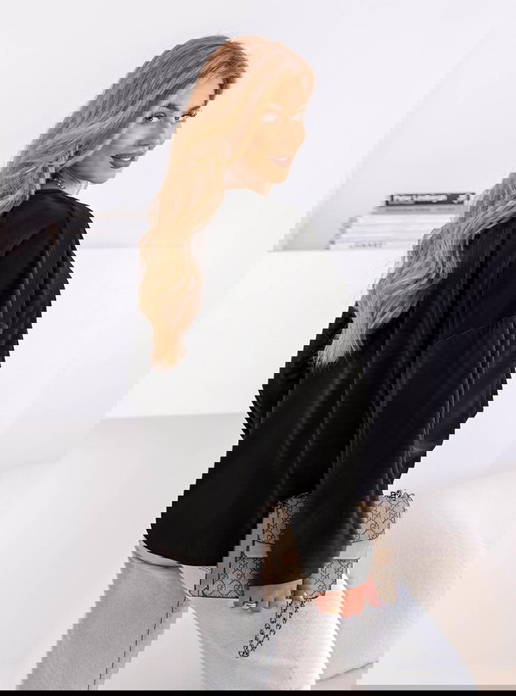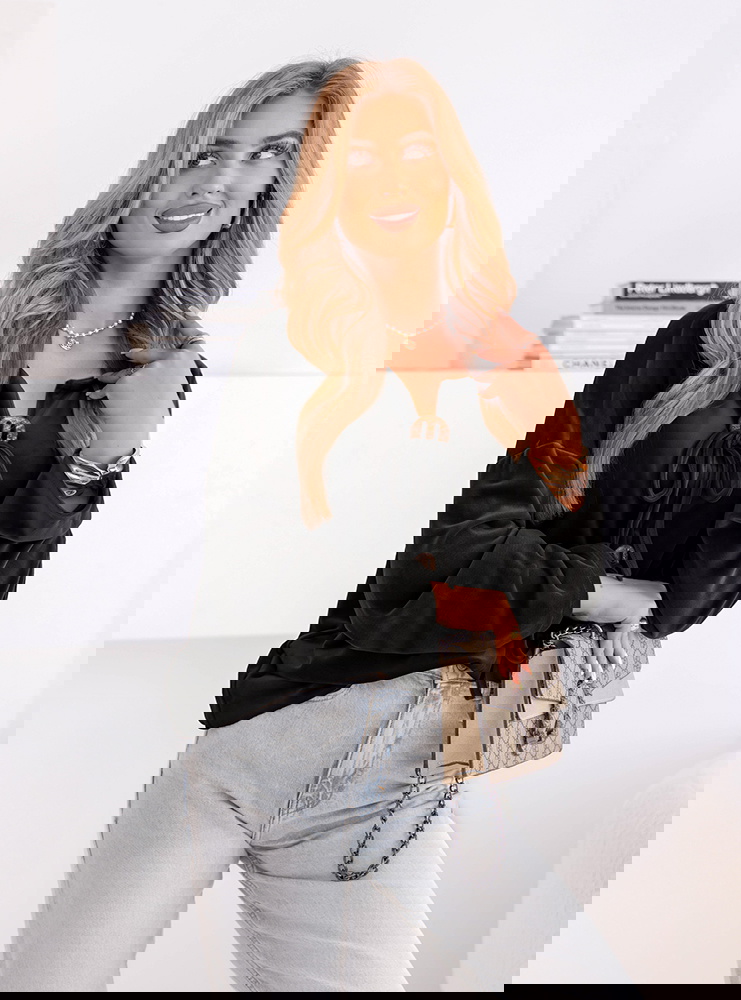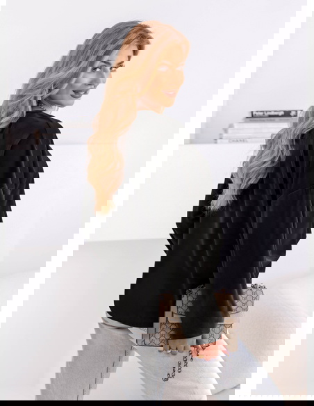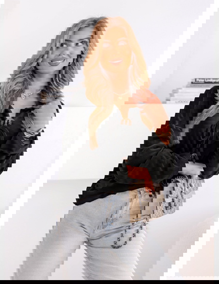 Czarna bluza welurowa z wiązaniem Shanon to propozycja, która z powodzeniem łączy w sobie elegancję i codzienny luz. Jej wyrazisty kolor dodaje klasy i sprawia, że cała stylizacja nabiera szyku. Luźny fason zapewnia wygodę, a jednocześnie podkreśla naturalny wdzięk. Ozdobne wiązanie z przodu to detal, który nadaje bluzie wyjątkowego charakteru. To model, który zachwyca prostotą, ale jednocześnie przyciąga spojrzenia subtelnym designem. Długie rękawy i lekko oversize’owy krój dodają całości swobody. Czarny odcień sprawia, że bluza jest niezwykle uniwersalna i łatwo dopasowuje się do różnych stylizacji. To ubranie, które doskonale wpisuje się w ponadczasowe trendy. Idealna dla kobiet, które lubią czuć się modnie i wygodnie w każdej sytuacji. To must-have w szafie każdej miłośniczki stylu z nutą elegancji.