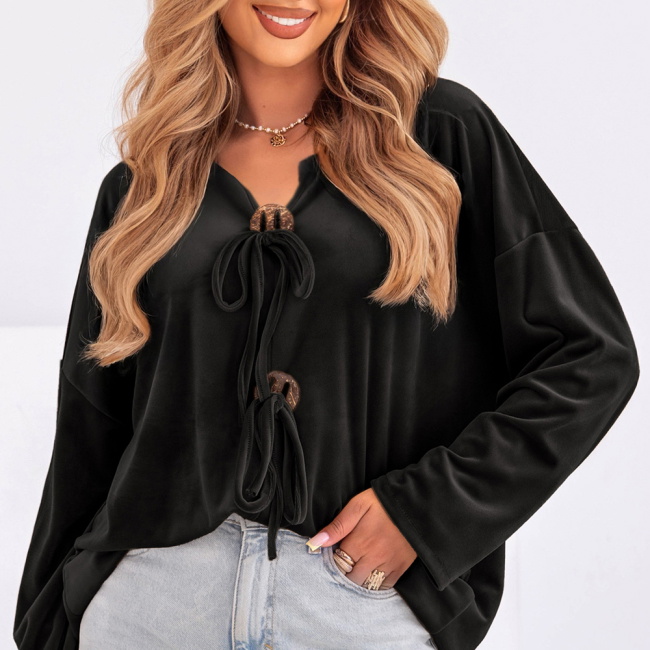 Czarna bluza welurowa z wiązaniem Shanon