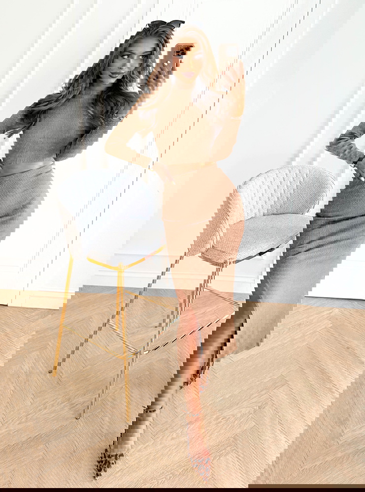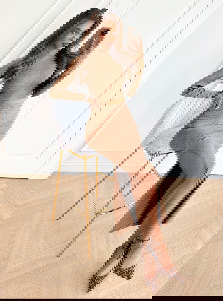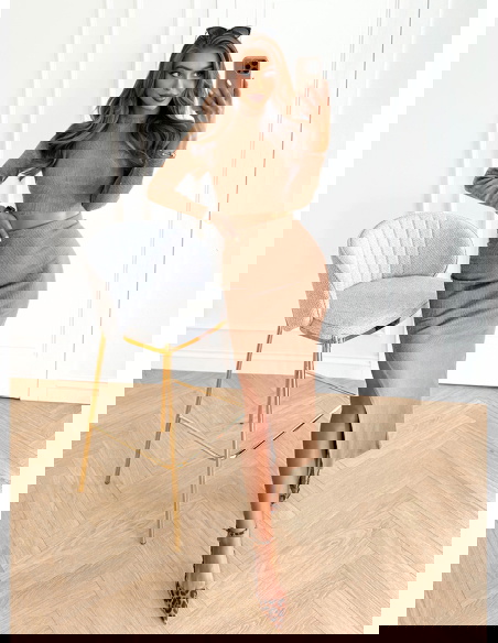 Beżowy prążkowany komplet top+spódnica z rozcięciem Sumire to propozycja, która zachwyca ponadczasową elegancją i kobiecym urokiem. Subtelny, jasny odcień beżu dodaje stylizacji klasy i sprawia, że całość prezentuje się wyjątkowo szykownie. Ten komplet to doskonały wybór dla kobiet, które lubią czuć się pewnie i atrakcyjnie w każdej sytuacji. Zestawienie dopasowanego topu z długim rękawem oraz spódnicy midi z rozcięciem daje efekt pełen wdzięku i nowoczesnego stylu. Krótki top pięknie podkreśla talię, nadając sylwetce proporcje, które przyciągają spojrzenia. Spódnica o ołówkowym kroju z wysokim stanem wysmukla figurę i dodaje całości eleganckiego charakteru. Rozcięcie z boku wprowadza nutę zmysłowości i lekko przełamuje klasyczną formę. To zestaw, który sprawdzi się w wielu stylizacjach, od codziennych aż po bardziej wyszukane. Beż to kolor uniwersalny, pasujący do każdej okazji i wielu dodatków. Dzięki temu komplet stanie się niezawodnym elementem Twojej garderoby.