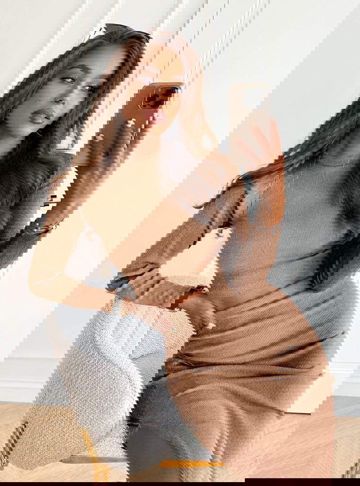 Beżowy prążkowany komplet top+spódnica z rozcięciem Sumire to kwintesencja kobiecego stylu. Dzięki dopasowanemu krojowi pięknie podkreśla sylwetkę i nadaje jej smukłości. Subtelny beż sprawia, że całość wygląda lekko, ale jednocześnie niezwykle elegancko. Rozcięcie w spódnicy dodaje zmysłowego akcentu, który sprawia, że komplet wyróżnia się spośród innych. To propozycja, która łączy prostotę z modnym, nowoczesnym charakterem. Świetnie komponuje się zarówno z klasycznymi szpilkami, jak i bardziej wyrazistymi dodatkami. Z takim zestawem każda stylizacja nabierze elegancji i niepowtarzalnego charakteru.