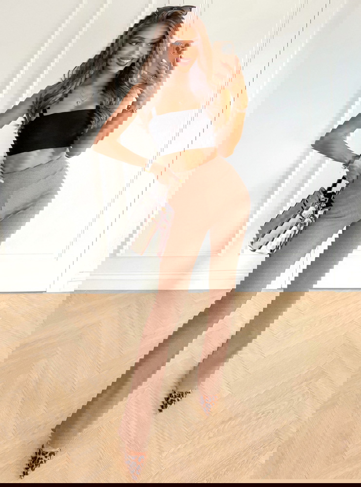 Modelka prezentuje produkty o rozmiarach S/M