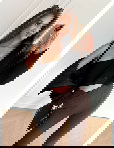 Czekoladowe prążkowane spodnie z długimi nogawkami Menie to propozycja, która łączy elegancję z nowoczesnym charakterem. Głęboki odcień brązu nadaje stylizacji klasy i wyjątkowego szyku, a jednocześnie stanowi świetną alternatywę dla klasycznej czerni. To kolor, który przyciąga uwagę i podkreśla styl właścicielki, a przy tym łatwo komponuje się z wieloma innymi barwami. Fason spodni pięknie modeluje sylwetkę, podkreślając atuty figury i optycznie wydłużając nogi. Subtelne prążkowanie dodaje całości lekkości, przełamując jednolity charakter materiału i wprowadzając nowoczesny akcent. Długie nogawki w prostym, a zarazem kobiecym kroju sprawiają, że sylwetka wygląda niezwykle proporcjonalnie. To spodnie, które doskonale sprawdzą się w codziennych stylizacjach, ale również w bardziej eleganckich zestawieniach. Ich uniwersalność sprawia, że można je stylizować na wiele sposobów – od klasycznych, po bardziej nowoczesne i odważne. Ten model to świetny wybór dla kobiet, które cenią ponadczasowe rozwiązania w modzie.