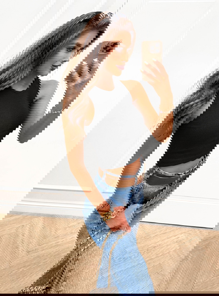 Czarny prążkowany top na ramiączkach Bilanca to baza, która potrafi odmienić każdą stylizację. Klasyczna czerń sprawia, że ten model jest niezwykle uniwersalny i ponadczasowy. To element garderoby, który sprawdzi się zarówno w prostych codziennych zestawach, jak i w bardziej eleganckich kompozycjach. Dzięki swojemu krojowi subtelnie podkreśla sylwetkę i dodaje pewności siebie. To wybór, który zawsze prezentuje się stylowo i modnie, niezależnie od okazji. Prążkowana faktura nadaje mu nieco nowoczesnego charakteru, zachowując przy tym minimalistyczny styl. Można go łatwo zestawiać z jeansami, spódnicami czy marynarką, co daje szerokie możliwości tworzenia różnorodnych outfitów. Jest to propozycja, po którą sięga się chętnie, gdy liczy się zarówno wygoda, jak i estetyka. Czarny top to gwarancja elegancji, która nigdy nie zawodzi. To element, który zawsze znajdzie swoje miejsce w szafie i będzie służył przez długi czas.