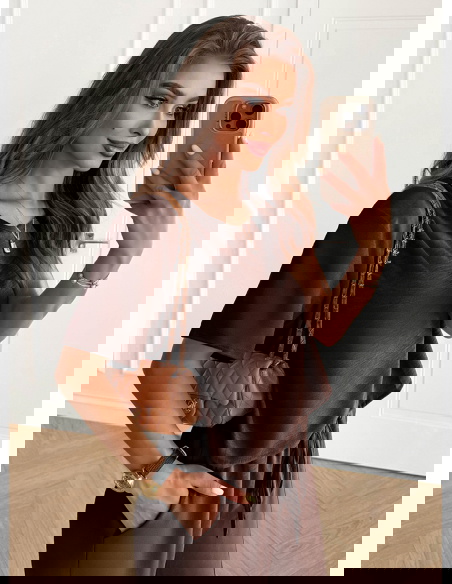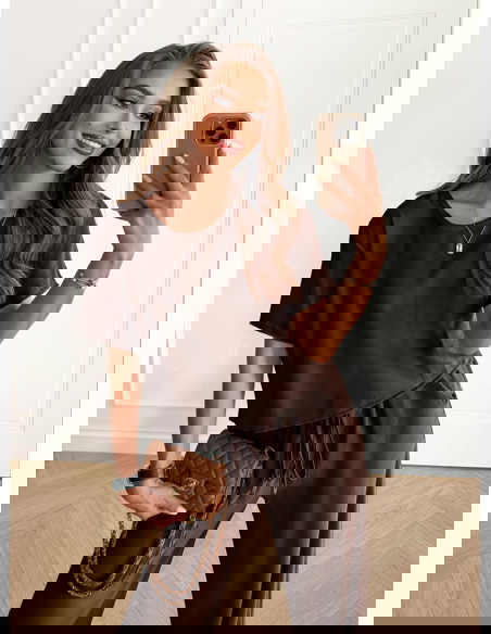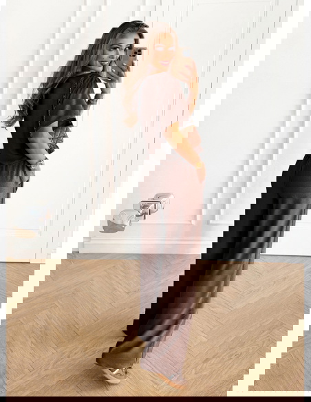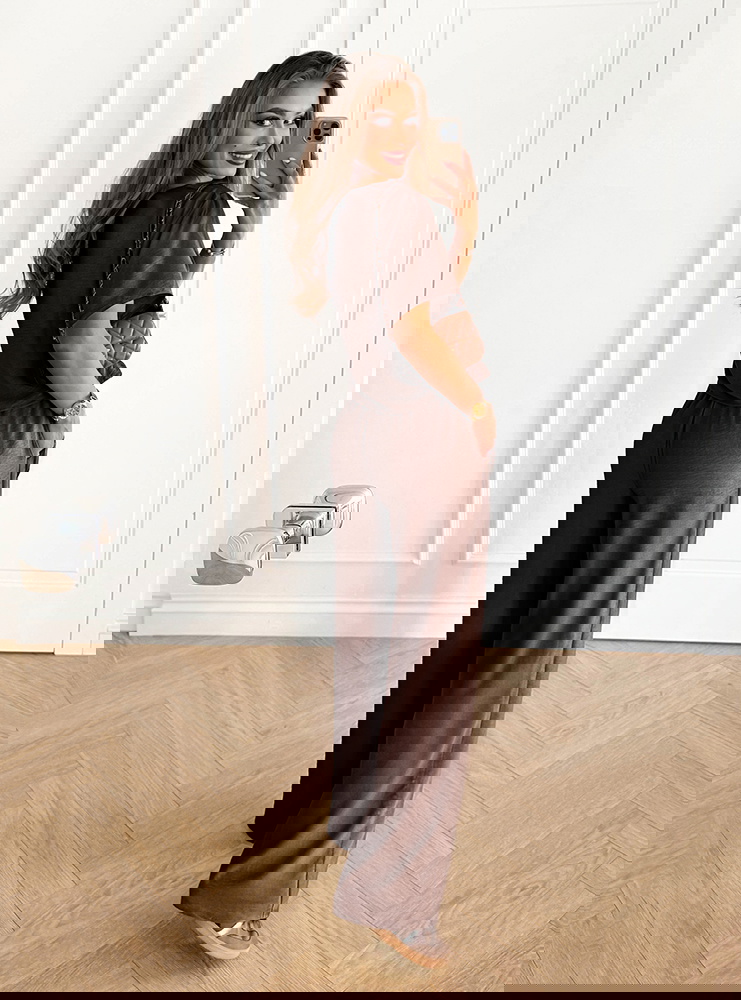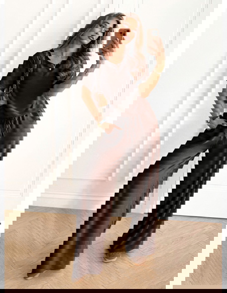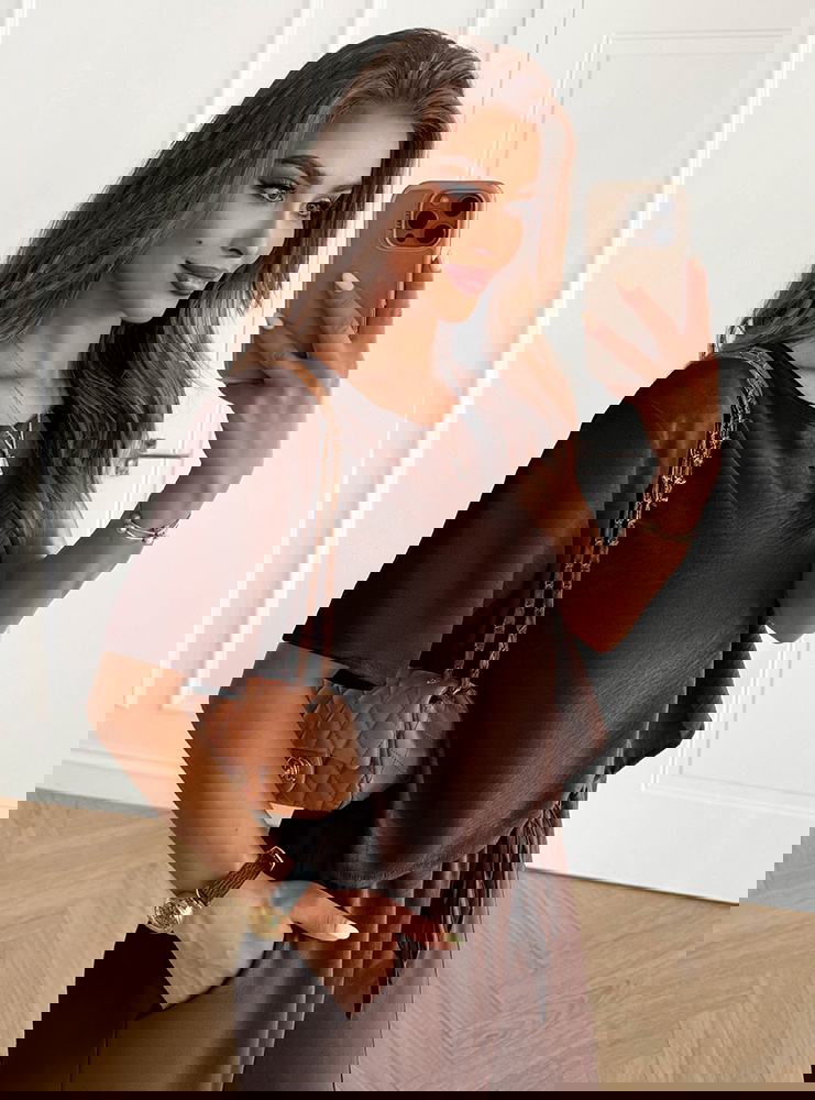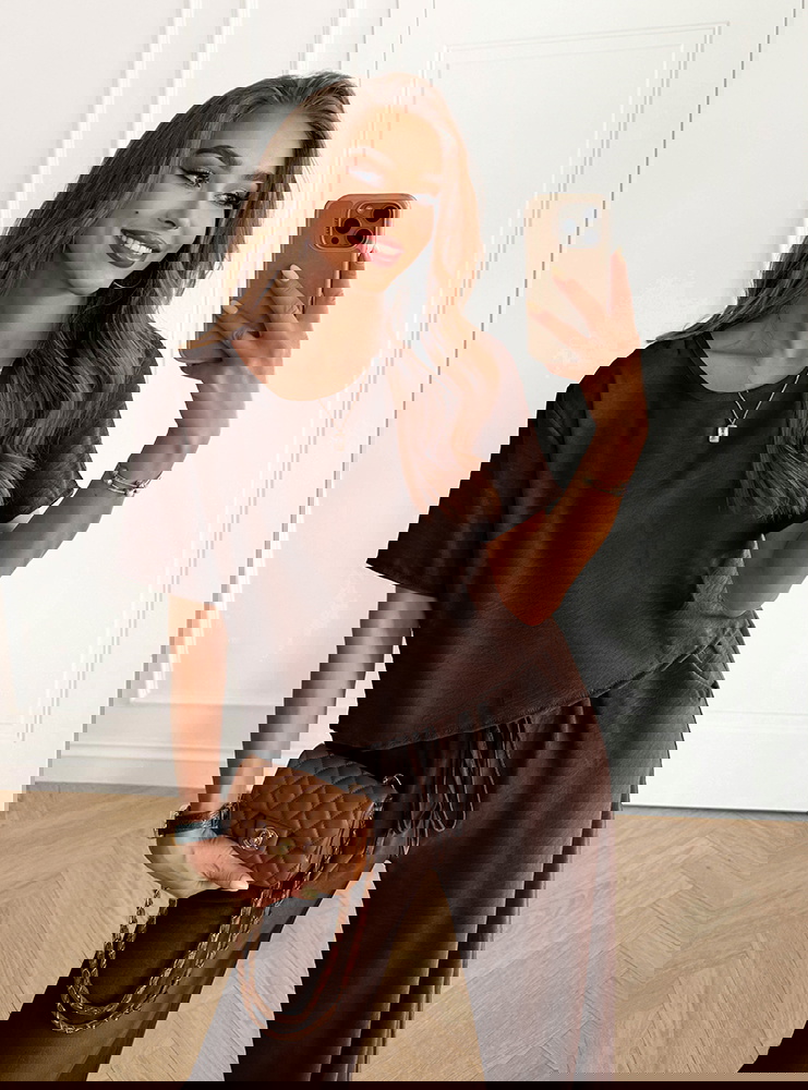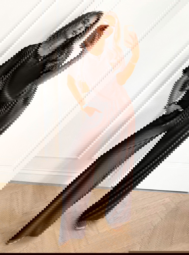 Czekoladowy komplet bluzka z krótkim rękawem i szerokie spodnie Rumie to idealna propozycja dla kobiet, które lubią połączenie wygody i elegancji w jednym. Jego klasyczny krój sprawia, że całość wygląda lekko, ale jednocześnie niezwykle stylowo. Głęboki, czekoladowy odcień dodaje całości elegancji i sprawia, że komplet pięknie podkreśla urodę. To wybór, który świetnie odnajdzie się w codziennych stylizacjach, a przy odpowiednich dodatkach stworzy także efektowny look na bardziej wyjątkowe okazje. Prosty dekolt i luźna bluzka zapewniają swobodę, a szerokie spodnie dodają całości nonszalancji. To komplet, który podkreśla naturalne piękno, jednocześnie gwarantując komfort noszenia. Dzięki niemu możesz czuć się pewnie i atrakcyjnie w każdej sytuacji. Stylowy charakter zestawu sprawia, że staje się on bazą wielu udanych stylizacji. Czekoladowy kolor to odcień ponadczasowy i niezwykle twarzowy. Właśnie dlatego ten komplet z łatwością wpasuje się w Twoją garderobę.