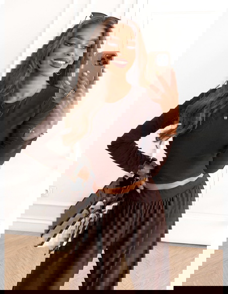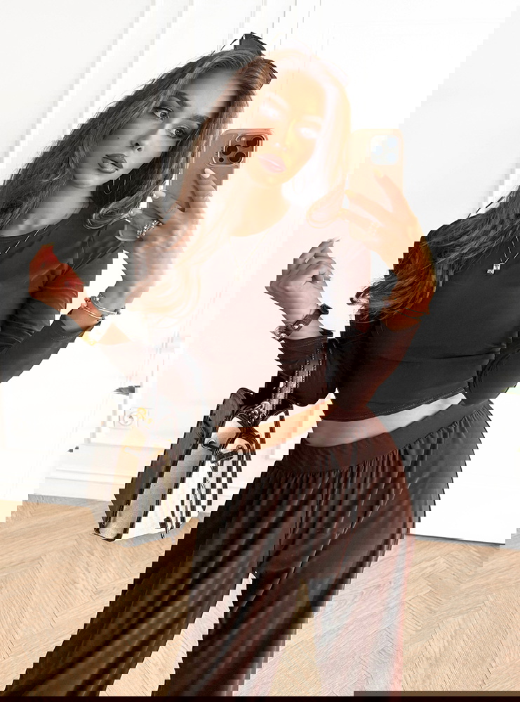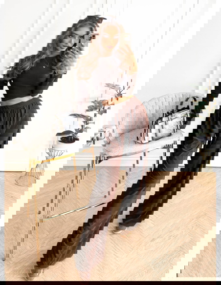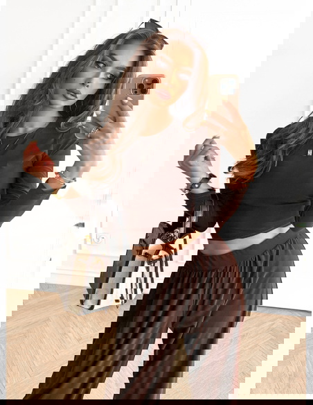 Czekoladowy komplet bluzka i szerokie spodnie Silvra to propozycja, która urzeka swoim głębokim, ciepłym kolorem. To zestaw, który podkreśla naturalne piękno i dodaje nuty elegancji w codziennym wydaniu. Krótka bluzka idealnie akcentuje sylwetkę, a szerokie spodnie zapewniają lekkość i swobodę ruchów. Całość prezentuje się niezwykle stylowo i nowocześnie. Ten komplet to doskonały wybór dla kobiet, które lubią połączenie prostoty i modowego charakteru. Jego uniwersalny krój pozwala na wiele możliwości stylizacji. Czekoladowy odcień sprawia, że zestaw wyróżnia się i dodaje ciepłego, przyjemnego klimatu. To strój, który sprawdzi się zarówno latem, jak i w innych porach roku. Dzięki niemu możesz stworzyć look pełen swobody i kobiecego wdzięku. To zdecydowanie komplet, który sprawi, że poczujesz się wyjątkowo i stylowo w każdej sytuacji.
