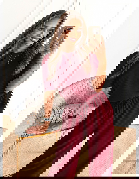 Bordowy komplet bluzka i szerokie spodnie z wiązaniem Annya