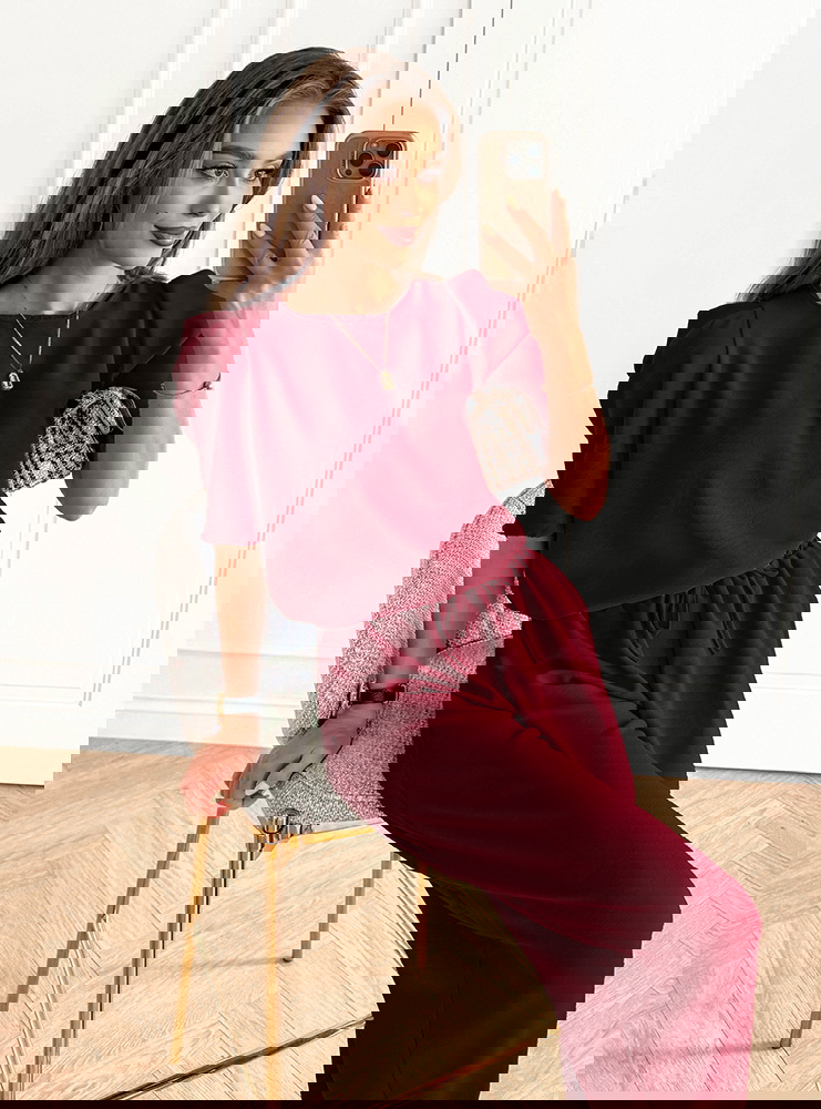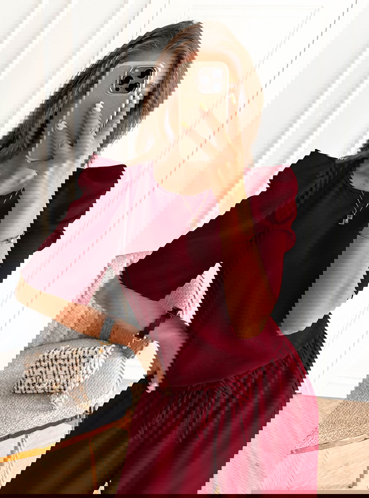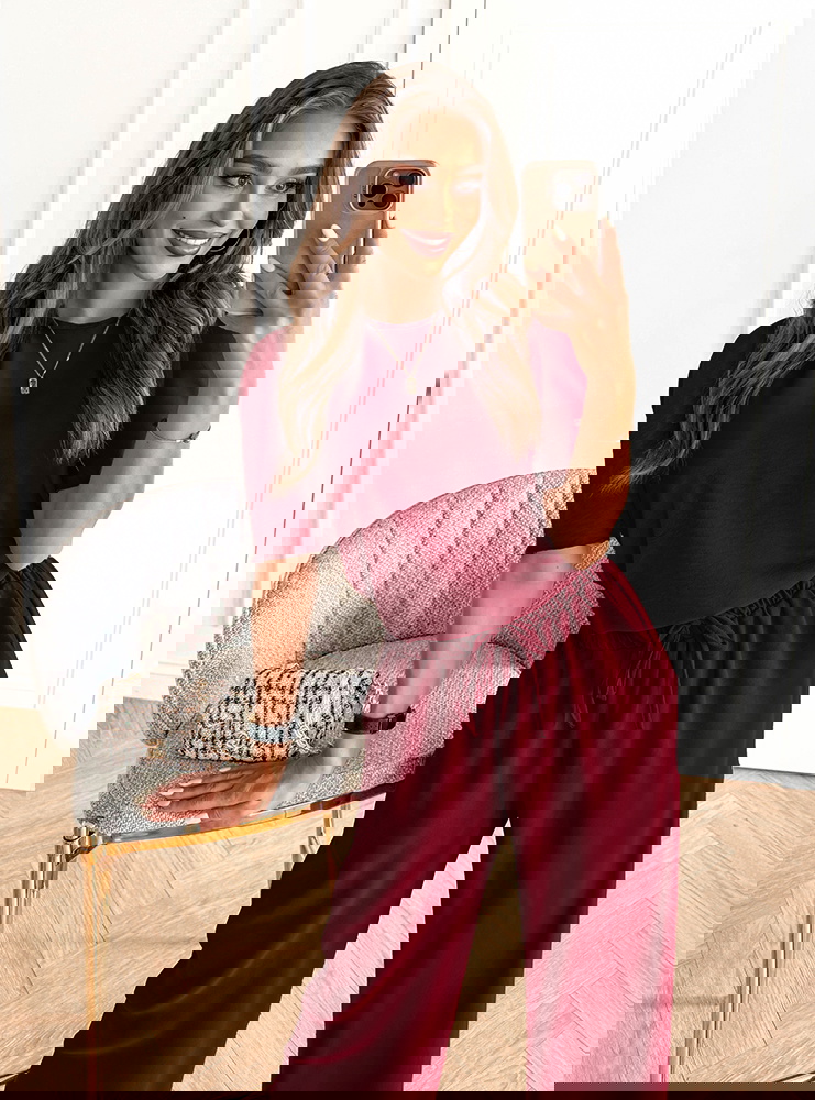 Bordowy komplet bluzka i szerokie spodnie z wiązaniem Annya to stylowa propozycja dla kobiet, które lubią połączenie wygody i elegancji. Głęboki kolor nadaje całości wyjątkowego charakteru. Wiązanie w talii pięknie podkreśla sylwetkę, dodając subtelności i lekkości. To zestaw, który można nosić na co dzień i na wyjątkowe okazje. Jego uniwersalny krój sprawia, że świetnie komponuje się z różnymi dodatkami. Dzięki temu każda stylizacja zyskuje nowoczesny i kobiecy wygląd. To komplet, który sprawi, że zawsze będziesz wyglądać stylowo i czuć się komfortowo.