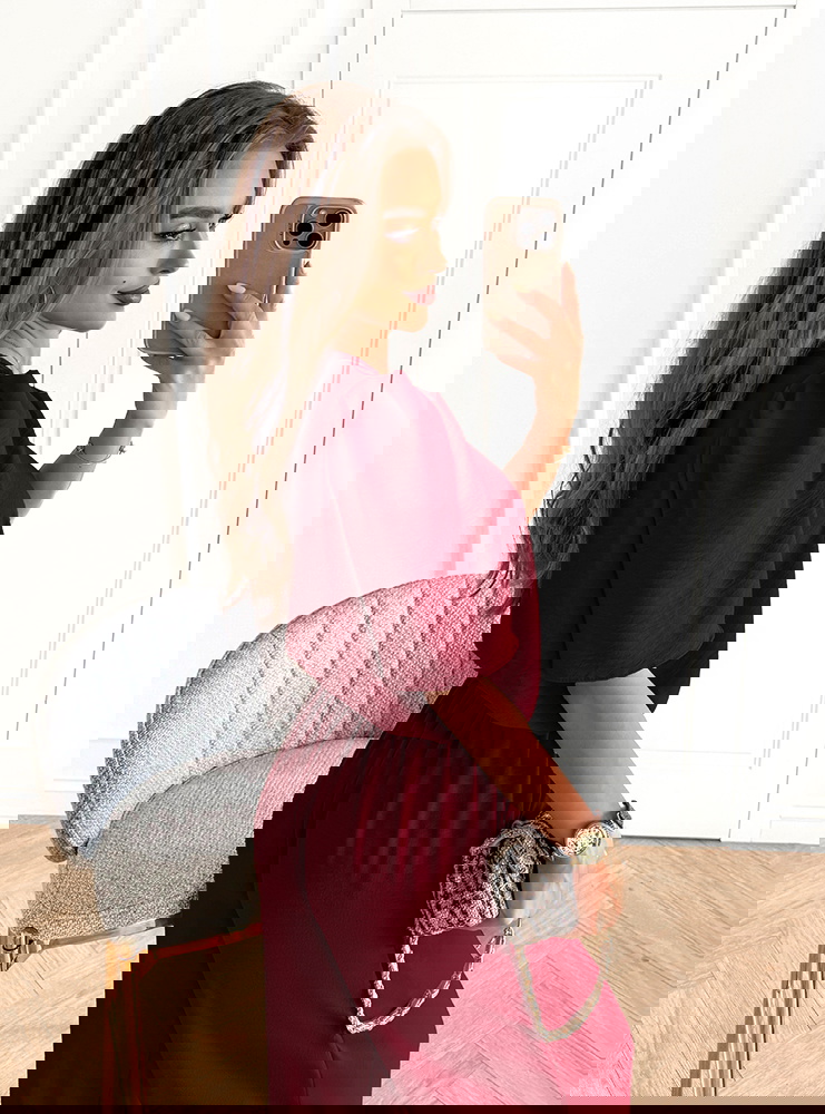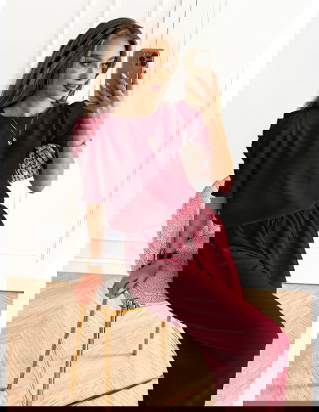 Bordowy komplet bluzka i szerokie spodnie z wiązaniem Annya to propozycja, która emanuje kobiecym wdziękiem i nowoczesną elegancją. Głęboki odcień bordowego koloru dodaje charakteru i sprawia, że stylizacja wyróżnia się na tle innych. To zestaw, który łączy w sobie wygodę i modny wygląd, idealny dla kobiet ceniących komfort w połączeniu z elegancją. Luźna bluzka subtelnie podkreśla sylwetkę, zachowując przy tym swobodę i lekkość. Szerokie spodnie z wiązaniem pięknie akcentują talię i nadają całości harmonijnego kształtu. Komplet wygląda świeżo i stylowo, wpisując się w aktualne trendy. Bordowy kolor wprowadza nutę szyku i zmysłowości, dzięki czemu stylizacja nabiera wyjątkowego charakteru. To propozycja, która świetnie sprawdzi się w codziennych sytuacjach, ale także podczas bardziej wyjątkowych chwil. Całość prezentuje się bardzo kobieco i uniwersalnie. Ten komplet to wybór, który dodaje pewności siebie i elegancji w każdej stylizacji.