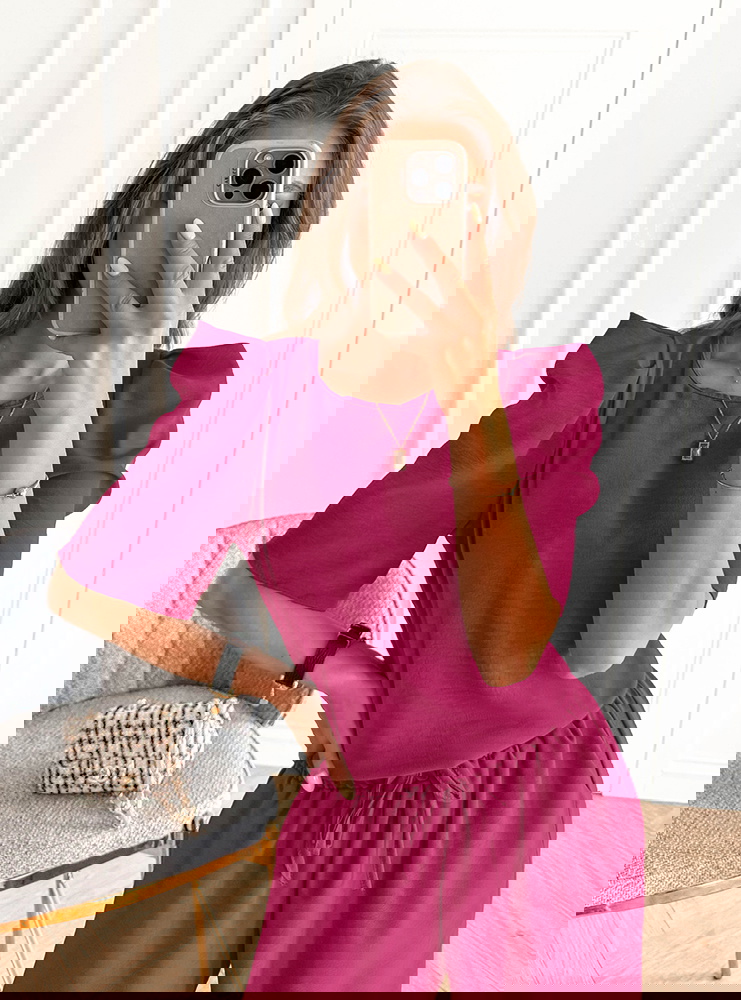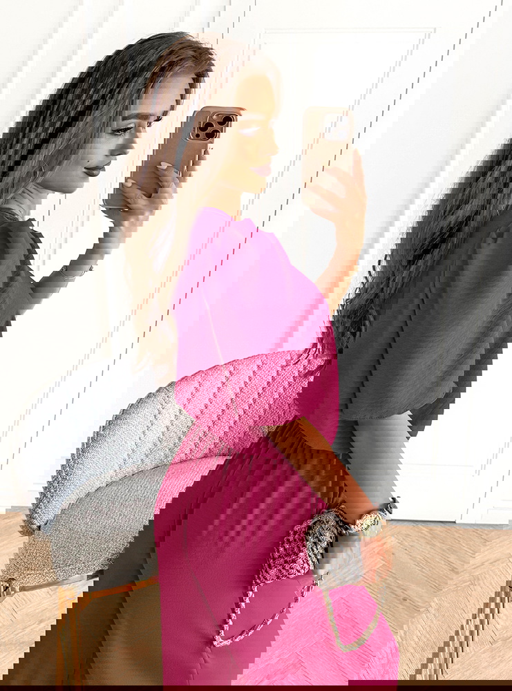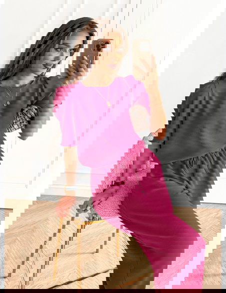 Komplet bluzka i szerokie spodnie z wiązaniem Annya - fuksja to propozycja pełna energii i kobiecego wdzięku. Intensywny, soczysty kolor od razu przyciąga wzrok i dodaje stylizacji wyjątkowego charakteru. To zestaw, który świetnie sprawdzi się w garderobie kobiet lubiących wyróżniać się i podkreślać swój indywidualny styl. Luźna bluzka zapewnia komfort noszenia, a jednocześnie prezentuje się modnie i nowocześnie. Szerokie spodnie z wiązaniem w talii pięknie podkreślają sylwetkę, zachowując przy tym wygodę. To komplet, w którym każda kobieta poczuje się swobodnie i stylowo. Fuksjowy odcień nadaje całości lekkości i wprowadza powiew wakacyjnej świeżości. Zestaw łączy w sobie prostotę i nowoczesny szyk, co sprawia, że pasuje na wiele okazji. Można go łatwo dopasować do różnych dodatków, tworząc zarówno codzienne, jak i bardziej wyjątkowe stylizacje. To propozycja, która doda pewności siebie i pozwoli wyróżnić się w najlepszym stylu.