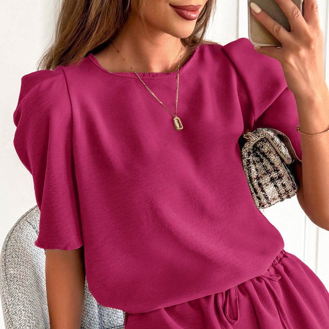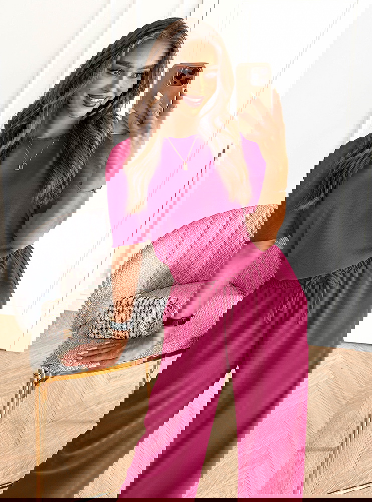 Komplet bluzka i szerokie spodnie z wiązaniem Annya - fuksja