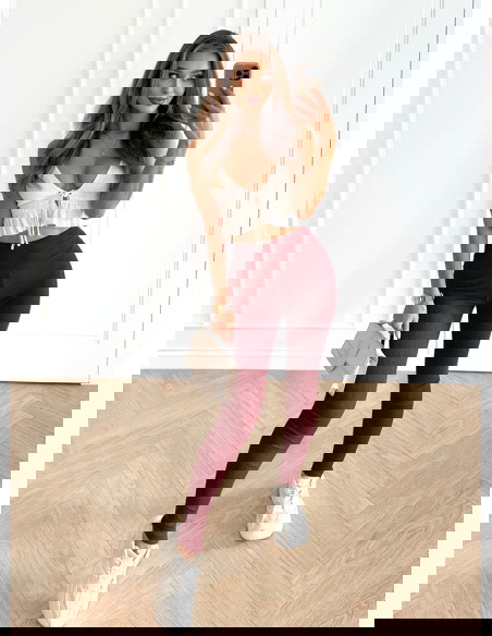 Bordowe prążkowane dopasowane legginsy Abellia to propozycja, która zachwyca intensywnym kolorem i modnym fasonem. Głęboki odcień bordo dodaje stylizacji elegancji i wyjątkowego charakteru. Dopasowany krój pięknie podkreśla sylwetkę, nadając jej smukłości i kobiecego wdzięku. Prążkowana struktura wprowadza nowoczesny akcent i sprawia, że legginsy wyglądają ciekawie i stylowo. To model, który świetnie łączy wygodę z atrakcyjnym wyglądem. Bordowe legginsy będą doskonałą bazą do wielu codziennych stylizacji. Ich prostota i wyrazisty kolor sprawiają, że łatwo można je zestawić zarówno z jasnymi, jak i ciemnymi elementami garderoby. To idealny wybór dla kobiet, które chcą poczuć się komfortowo, a jednocześnie modnie. Dzięki nim każda stylizacja nabierze energii i charakteru. To legginsy, które z powodzeniem sprawdzą się w każdej szafie.