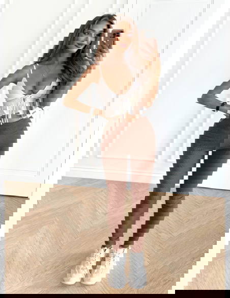 Prążkowane dopasowane legginsy Abellia - mocha mousse to idealne połączenie wygody i stylu. Ich dopasowany fason podkreśla sylwetkę, a prążkowana struktura dodaje nowoczesnego akcentu. Subtelny kolor mocha mousse nadaje całości elegancji i kobiecego uroku. To legginsy, które można stylizować na wiele sposobów – od codziennych po bardziej kobiece zestawienia. Dzięki swojej uniwersalności będą świetnym elementem garderoby na każdą okazję. To model, który pozwala czuć się swobodnie i wyglądać stylowo jednocześnie. Jeśli szukasz legginsów w modnym, stonowanym kolorze – ten model będzie strzałem w dziesiątkę.