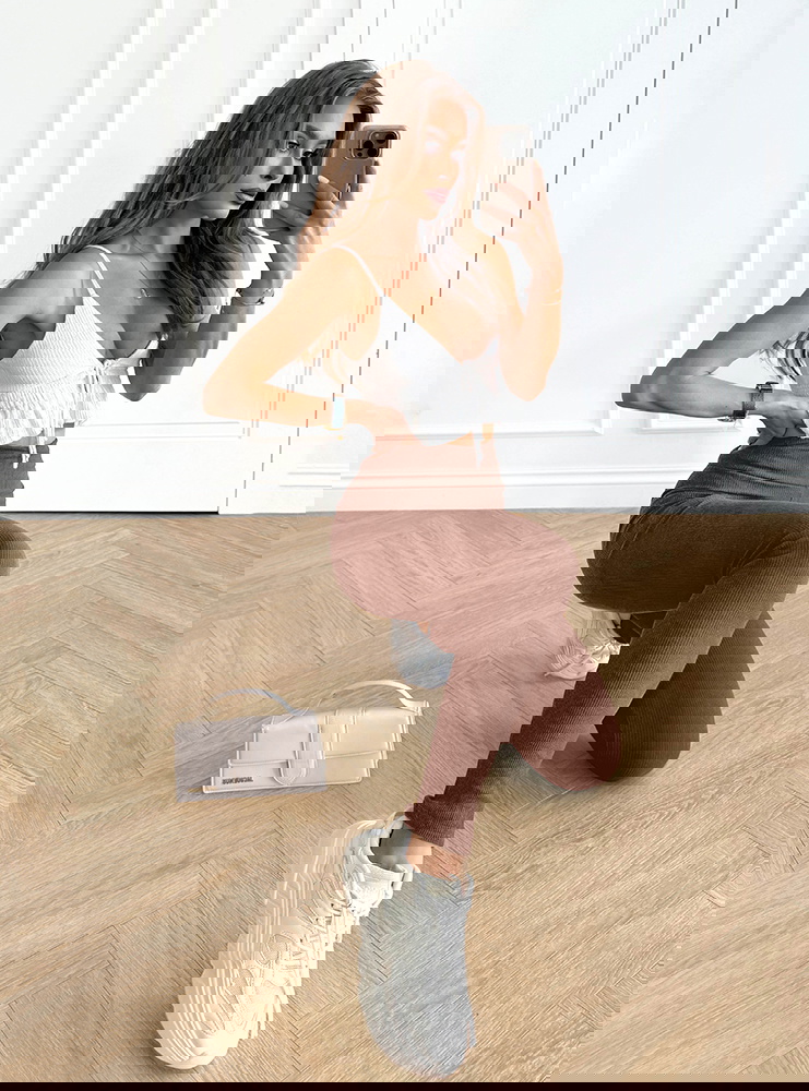 Prążkowane dopasowane legginsy Abellia - mocha mousse to propozycja, która łączy nowoczesny styl z wyjątkowym komfortem. Subtelny, stonowany odcień mocha mousse nadaje całości elegancji i sprawia, że legginsy wyróżniają się spośród klasycznych modeli. Dopasowany krój pięknie podkreśla sylwetkę, optycznie ją wysmuklając. Prążkowana struktura dodaje im modnego charakteru i oryginalności. To model, który doskonale sprawdzi się w codziennych stylizacjach, nadając im lekkości i kobiecego wdzięku. Neutralny kolor sprawia, że legginsy można łatwo zestawić z różnymi dodatkami. To idealna baza do budowania zarówno casualowych, jak i bardziej stylowych looków. Dzięki swojej prostocie są niezwykle uniwersalne, a jednocześnie niebanalne. To element garderoby, który świetnie wpisuje się w aktualne trendy. Prążkowane legginsy w kolorze mocha mousse to must-have dla każdej kobiety, która ceni minimalizm w eleganckim wydaniu.