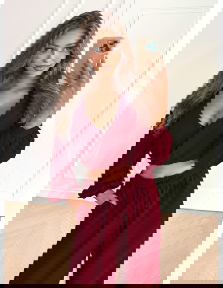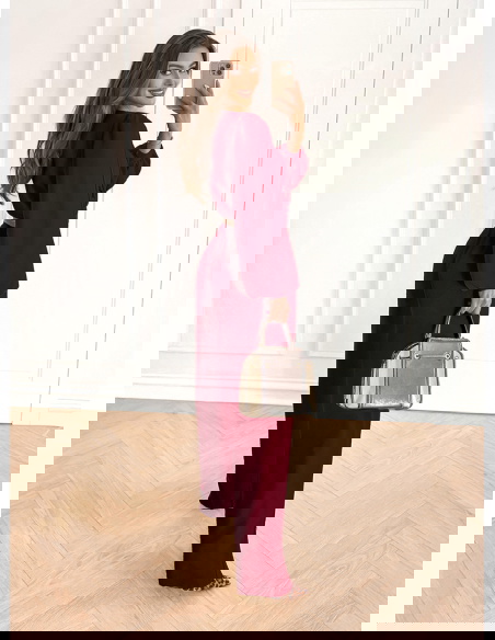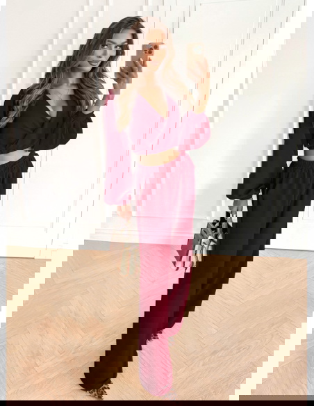 Bordowy komplet top z bufiastymi rękawami i długie spodnie Coralline to stylizacja, która zachwyca elegancją i kobiecym wdziękiem. Głęboki odcień bordo dodaje całości szyku i sprawia, że wyróżnia się na tle innych zestawów. Top z bufiastymi rękawami przyciąga uwagę i nadaje stylizacji modnego charakteru. To detal, który podkreśla kobiecość i dodaje lekkości całemu zestawowi. Długie spodnie o swobodnym fasonie gwarantują komfort noszenia i elegancki wygląd. Razem tworzą harmonijną całość, która sprawdzi się w wielu sytuacjach. Bordowy kolor doskonale komponuje się z różnymi dodatkami – od klasycznych po bardziej wyraziste. To komplet, który świetnie odnajdzie się w codziennych stylizacjach, ale także podczas wyjątkowych okazji. Stylizacja w tym wydaniu dodaje pewności siebie i prezentuje się bardzo kobieco. To połączenie, które łączy wygodę, nowoczesność i ponadczasowy styl.