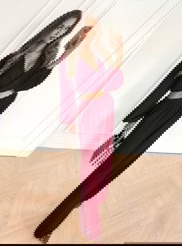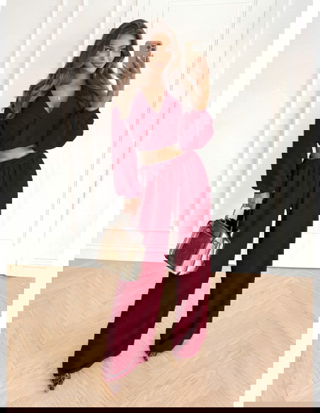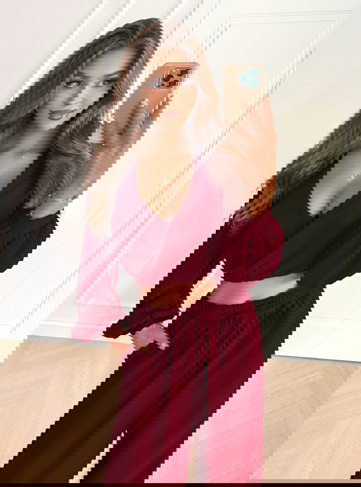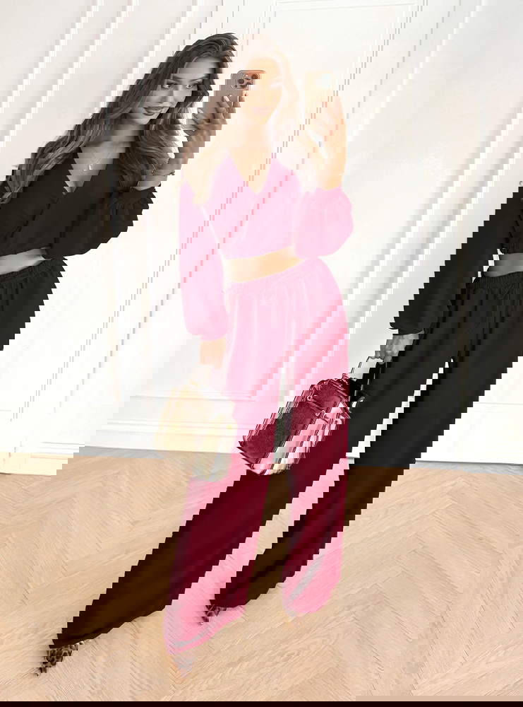 Bordowy komplet top z bufiastymi rękawami i długie spodnie Coralline to elegancka i stylowa propozycja na wiele okazji. Głęboki odcień bordo nadaje całości wyrazistości i klasy. Top z bufiastymi rękawami dodaje lekkości, a spodnie zapewniają komfort i swobodę. To zestaw, który można łatwo dopasować do różnych dodatków. Dzięki temu świetnie sprawdzi się zarówno w codziennych, jak i okazjonalnych stylizacjach. To połączenie wygody i modnego designu w jednym. Jeśli szukasz stylizacji, która podkreśli Twoją kobiecość – ten komplet będzie idealnym wyborem.