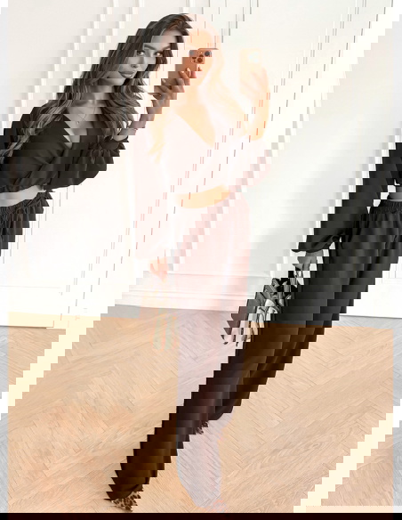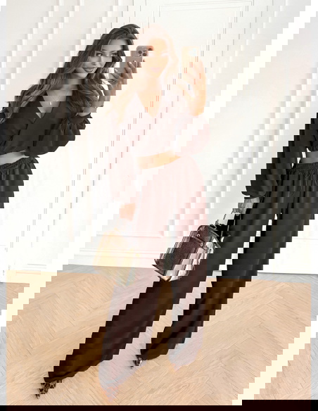 Czekoladowy komplet top z bufiastymi rękawami i długie spodnie Coralline to stylizacja, która łączy nowoczesny charakter z klasyczną elegancją. Głęboki odcień brązu sprawia, że całość prezentuje się wyjątkowo szykownie i ponadczasowo. Top z bufiastymi rękawami dodaje lekkości i kobiecego wdzięku, przyciągając wzrok subtelnym detalem. To rozwiązanie, które nadaje stylizacji modnego i oryginalnego akcentu. Długie spodnie o szerokich nogawkach zapewniają swobodę ruchów i wygodę, jednocześnie podkreślając elegancję całego zestawu. Komplet ten wyróżnia się harmonią i doskonałym dopasowaniem poszczególnych elementów. Czekoladowy kolor świetnie komponuje się z wieloma dodatkami – zarówno jasnymi, jak i kontrastującymi. To zestaw, który doskonale sprawdzi się w codziennych sytuacjach, ale też w bardziej wyjątkowych momentach. Stylizacja ta doda pewności siebie i podkreśli indywidualny styl każdej kobiety. To propozycja, która łączy wygodę, kobiecość i nowoczesny design.