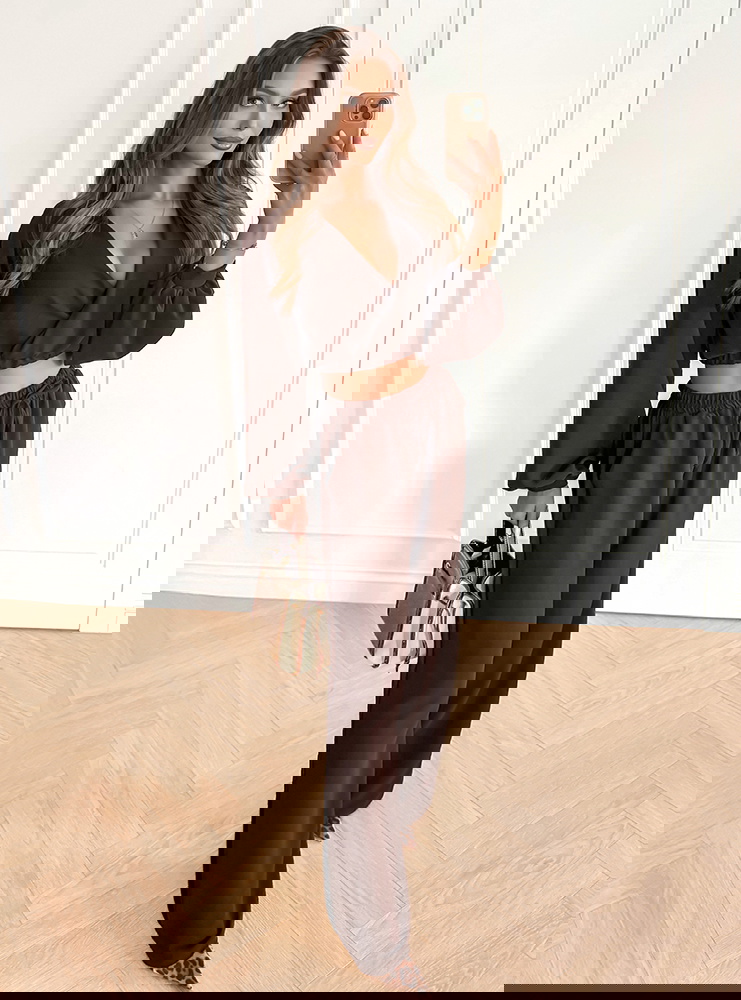 Czekoladowy komplet top z bufiastymi rękawami i długie spodnie Coralline to propozycja dla kobiet, które chcą wyglądać elegancko i czuć się swobodnie. Głęboki odcień brązu nadaje całości wyjątkowego charakteru. Top z bufiastymi rękawami wprowadza modny, kobiecy akcent. Spodnie o szerokim kroju zapewniają wygodę i swobodę w noszeniu. To komplet, który można dopasować do wielu okazji i stylizacji. Jego uniwersalny kolor i fason sprawiają, że szybko stanie się ulubionym elementem garderoby. Jeśli szukasz zestawu, który łączy nowoczesny styl z ponadczasową elegancją – ten komplet będzie idealnym wyborem.