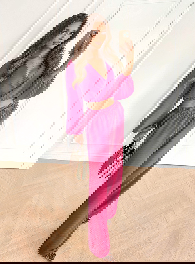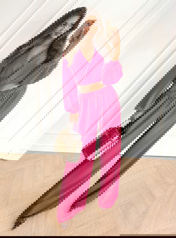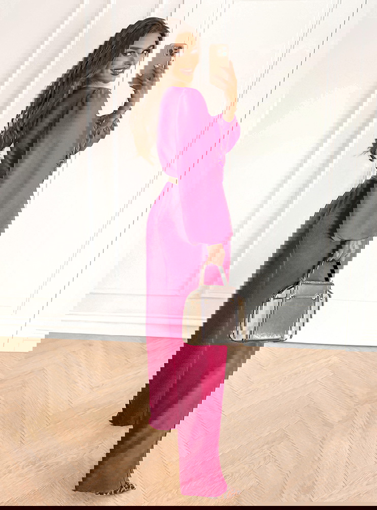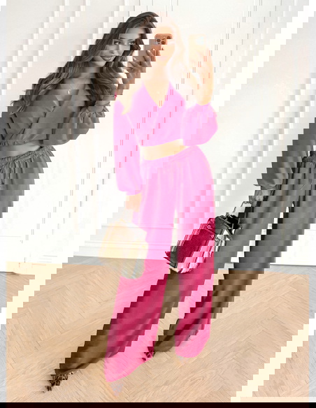 Komplet top z bufiastymi rękawami i długie spodnie Coralline - fuksja
