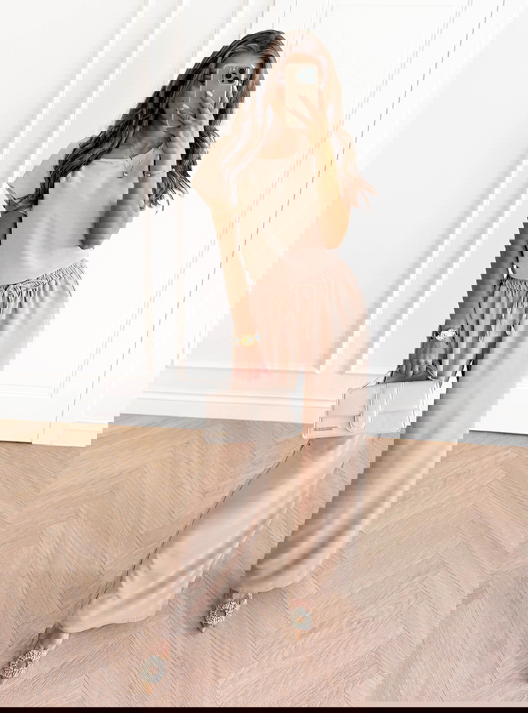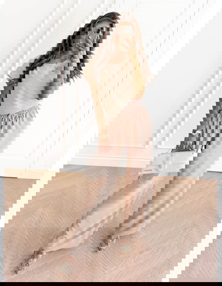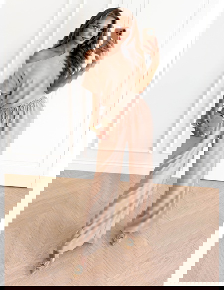 Beżowy komplet bluzka z krótkim rękawem i spodnie Donnea to stylizacja, która wyróżnia się subtelną elegancją i ponadczasowym wdziękiem. Delikatny odcień beżu sprawia, że całość prezentuje się lekko i świeżo. Bluzka z krótkim rękawem nadaje zestawowi uniwersalności, dzięki czemu pasuje na wiele okazji. Spodnie o luźnym kroju gwarantują wygodę i swobodę, jednocześnie podkreślając stylowy charakter całości. To komplet, który doskonale łączy prostotę z nowoczesnością. Neutralny kolor beżu idealnie komponuje się z różnymi dodatkami – zarówno w jasnych, jak i bardziej kontrastowych barwach. Stylizacja w tym wydaniu świetnie sprawdzi się o każdej porze roku. To propozycja, która wprowadza świeżość i lekkość do kobiecej garderoby. Beżowy komplet pozwala stworzyć wiele różnorodnych stylizacji – od casualowych po eleganckie. To model, który będzie niezawodnym wyborem w wielu codziennych sytuacjach.